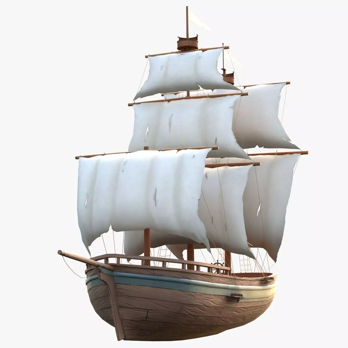 Stylized Wooden Sailing Ship Low-poly 3D model