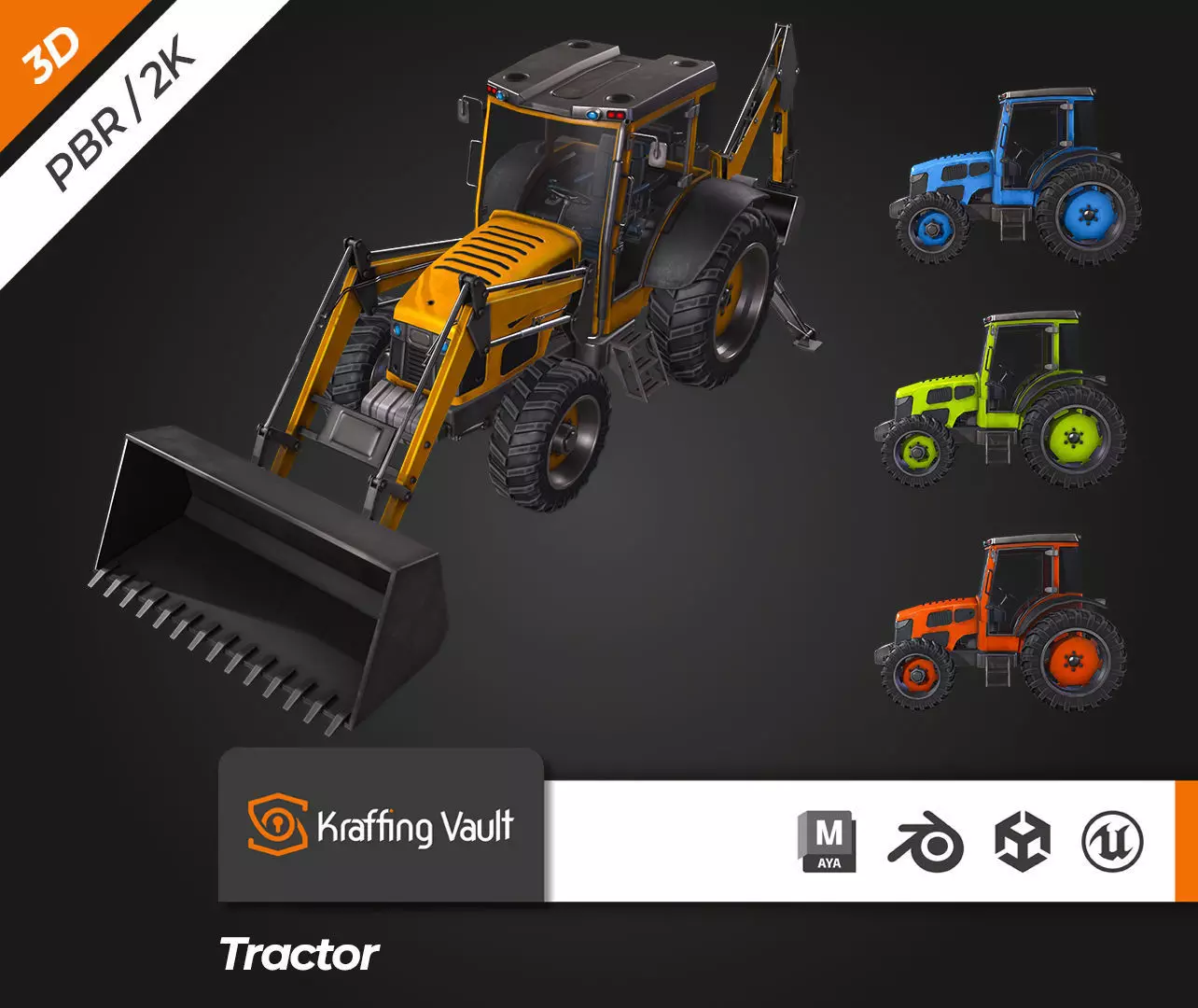 Kraffing presents a 3D modeling Tractor V2. Recreated design so you can use it in personal projects, scenes, videogames and more.