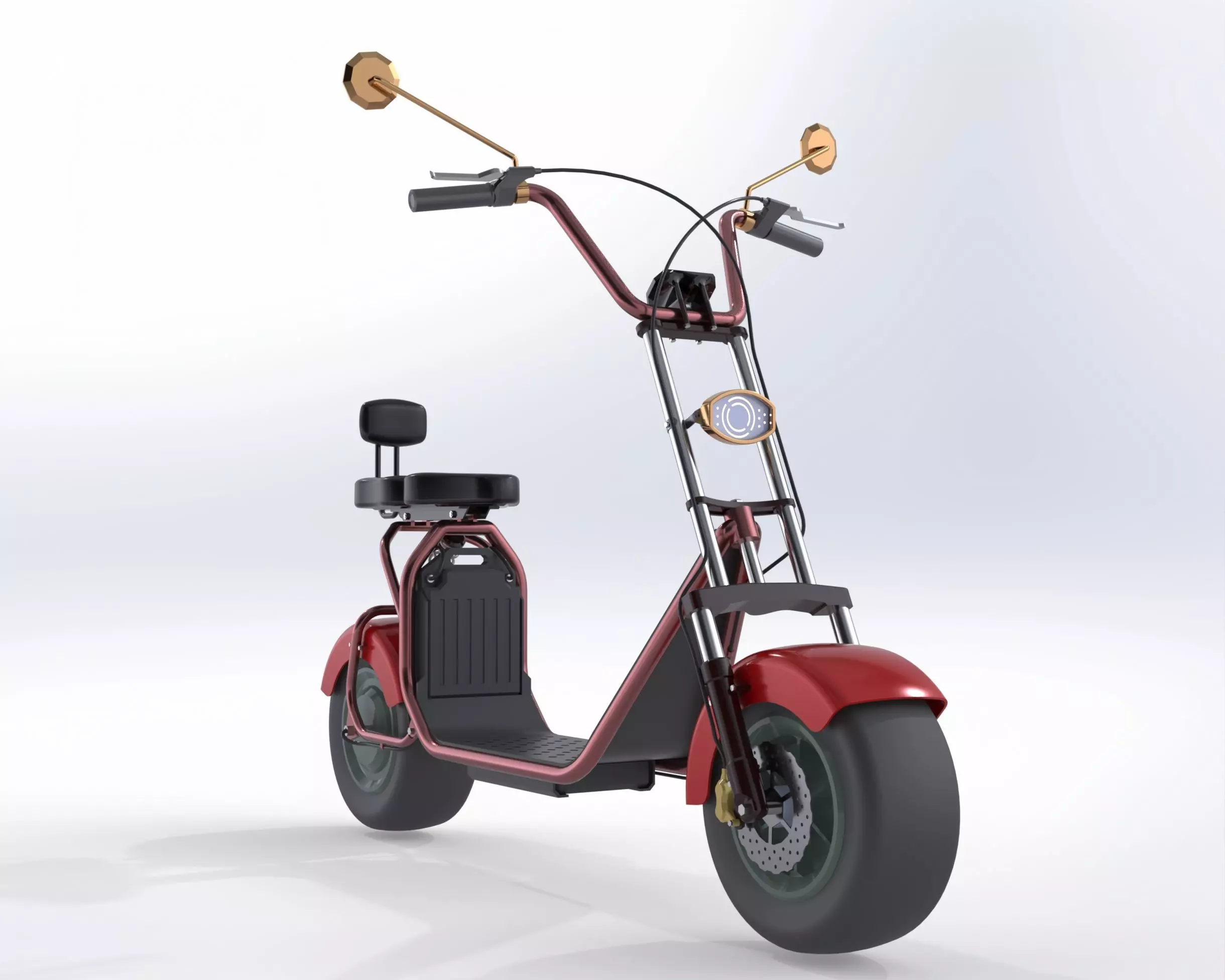 This is a model of an urban, fat-tire, coco style electric scooter. It is made in real life scale and size and trying to keep good aesthetics. It is also a simplified model, consisting only of the main parts of a real electric scooter, just meant to make a good visual impresion.