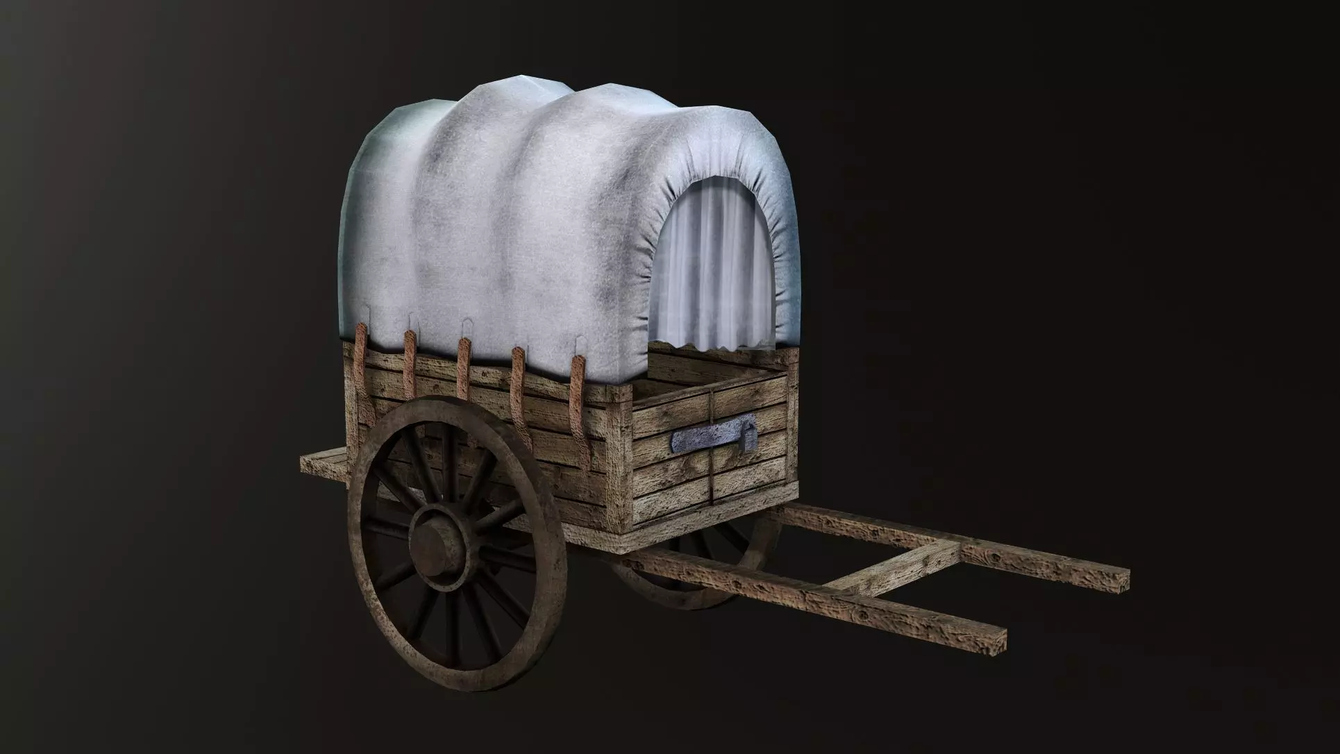 HiWooden Cart 3D horse cart wagon wheel wood old farm village, available in 3d max , ready for 3D animation