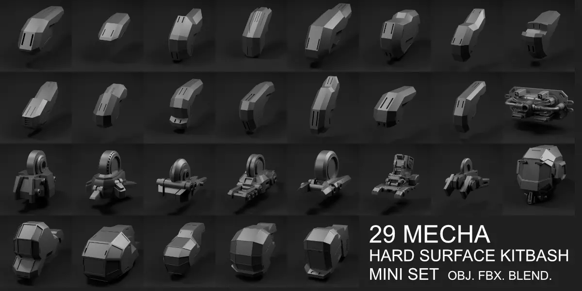 This mini pack integrates smoothly with any existing sci‑fi or mech kitbash library. Mix, match, and iterate rapidly to generate new mech silhouettes, vehicle variants, or hard‑surface designs.