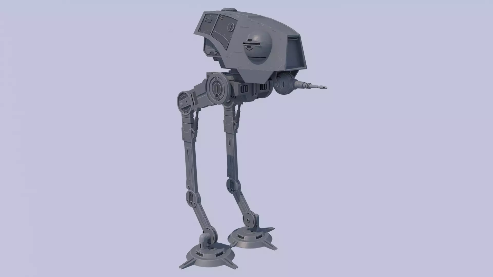 AT-DP (All Terrain Defense Pod) shown in Star Wars Rebels. This is a high poly model, with plenty of texture maps (normals, height, base, and roughness. The height map may have to be tweaked so it isnt so bumpy looking, like in my renders above). Comes with obj, mtl, and fbx. Model is built to be rigged as well (legs, feet, body, and gun turret can be articulated). If you have any questions, feel free to message me!