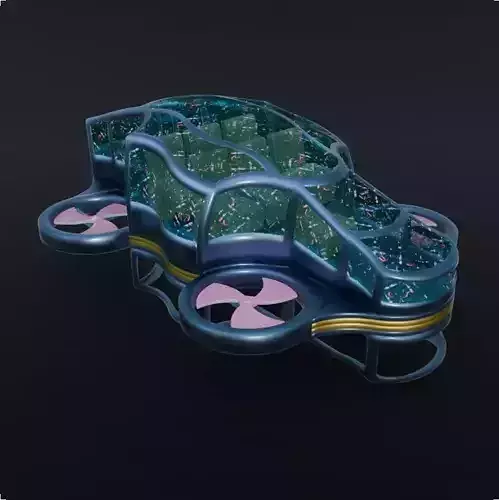 This is a prototype of a flying car, similar to a drone, but for transporting passengers and luggage.