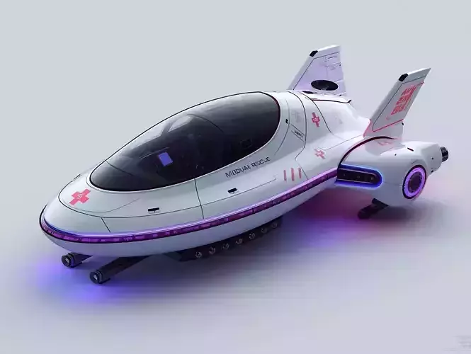 Futuristic Modular Rescue / Airlift Vehicle 3D ModelDescriptionThis 3D model presents a highly advanced and modular Futuristic Rescue or Airlift Vehicle. It utilizes a sleek, rounded hull design and is clearly designated for emergency and medical operations, perfect for high-tech or sci-fi search-and-rescue scenes.