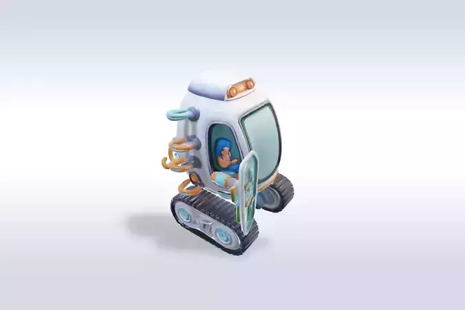 This is a high-quality futuristic sci-fi robot vehicle 3D model featuring a compact robotic pilot inside a transparent cockpit and advanced mechanical arms with energy modules. The design is ideal for games, cinematic renders, animations, AR/VR, concept visualization, and 3D printing.