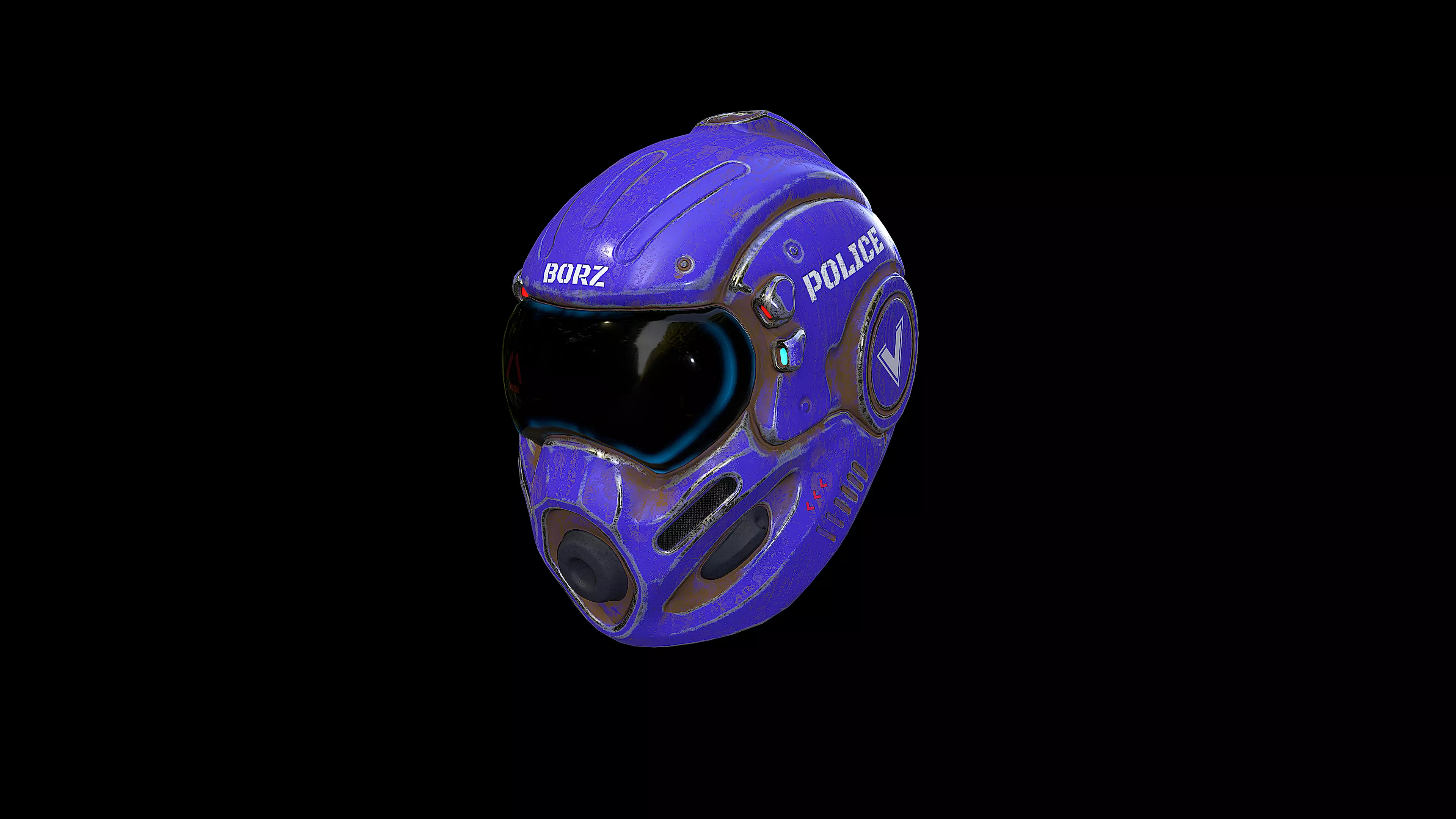3D model Helmet_Borz_Police, modeling in Blender, texturing in Substance Painter, archive include FBX files, low and high poly and STL file, 8K texture