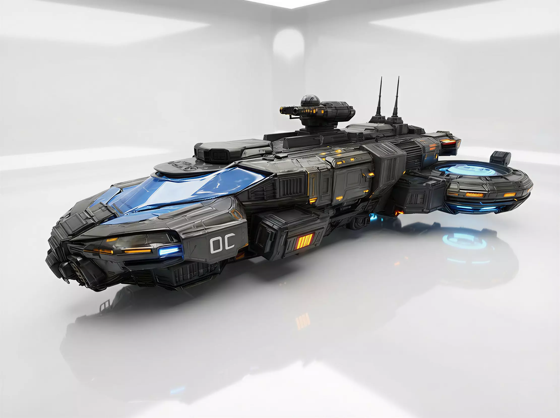 PBR Texturing: Fully equipped with high-quality Physically Based Rendering (PBR) textures for photorealistic lighting response. Perfect for harsh sci-fi environments, showing realistic metal wear, emissive thruster glows, and military-grade decals.