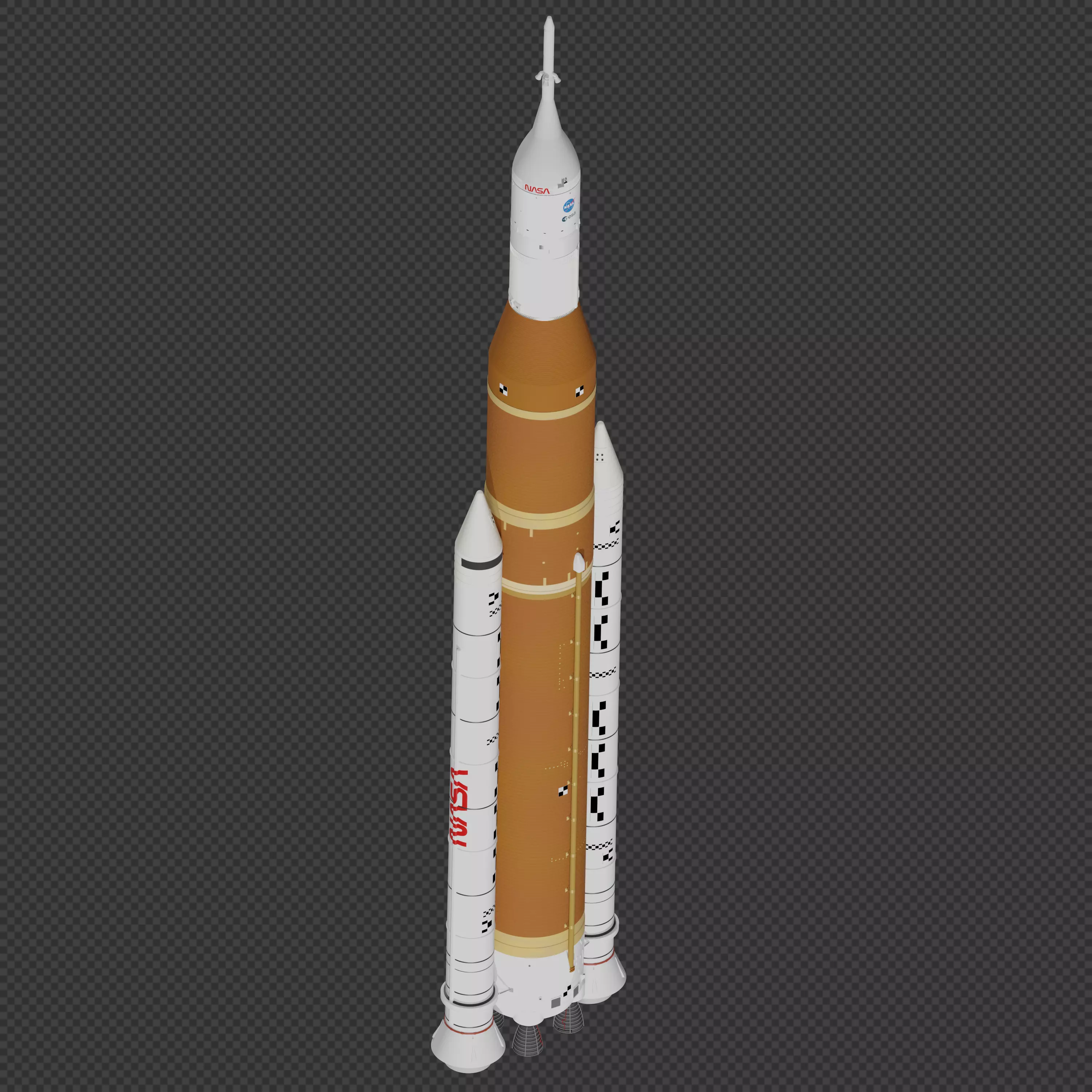 Note that this file does NOT contain any Orion-specific parts, such as Orion itself, the Orion Stage Adapter, LAS, or SM fairings. Those are sold separately, here https://www.cgtrader.com/3d-models/vehicle/sci-fi/orion-mpcv-spacecraft