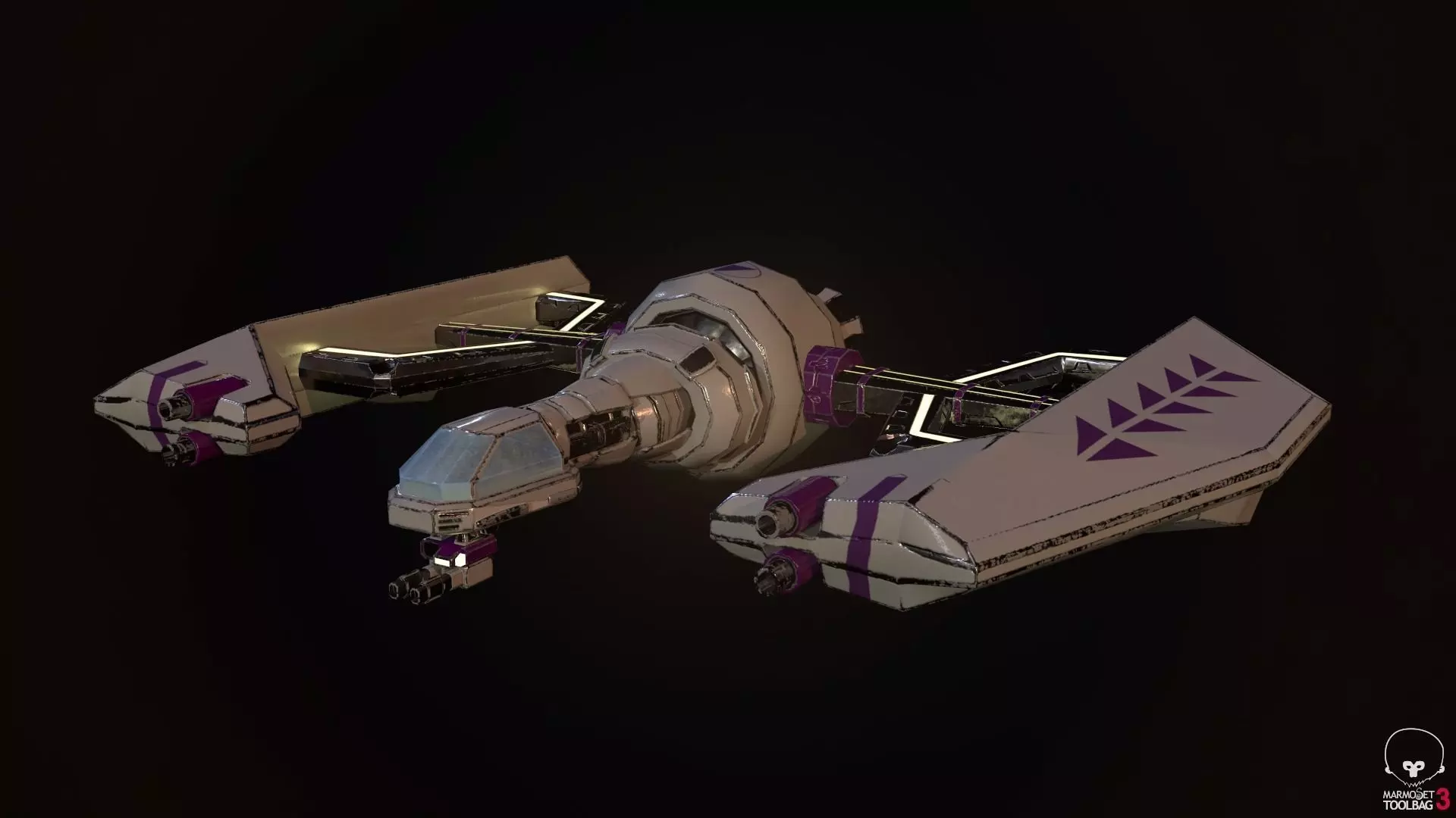 A SpaceShip Star Fighter ready for a Game Engine it has 5376 verts 15213 edges 9884 polys and 9916 tris and the textures are albedo, metal, normal and emissive the sizes are 2048 x 2048 If you need 3D Game Assets or STL Files I can do commission works.