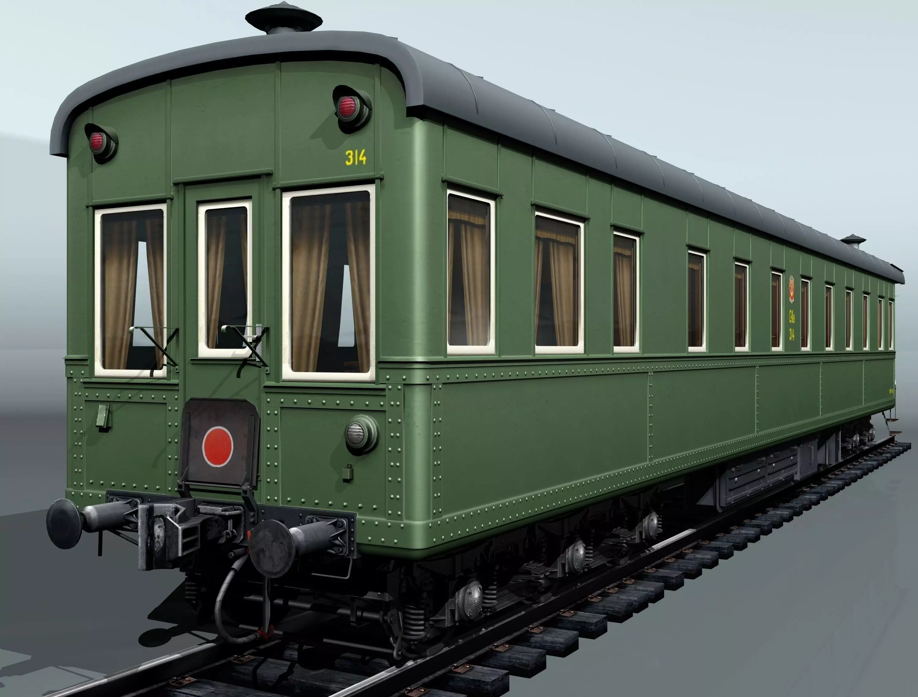 Prototype Description: Passenger railcar (carriage), 12-seats (sleeping): (6 - coupe and 1 - salon); Category: passenger rail car luxe class, sleeping railcar of long distance. Railcar type: Polonso. In addition, these railcars are called: Vladikavkaz railway type or Railcar Vladikavkaz type, Sample 1910. Wagons of this type were used on long-haul routes, a Southern and Eastern direction as well as on the Chinese - Eastern Railway.