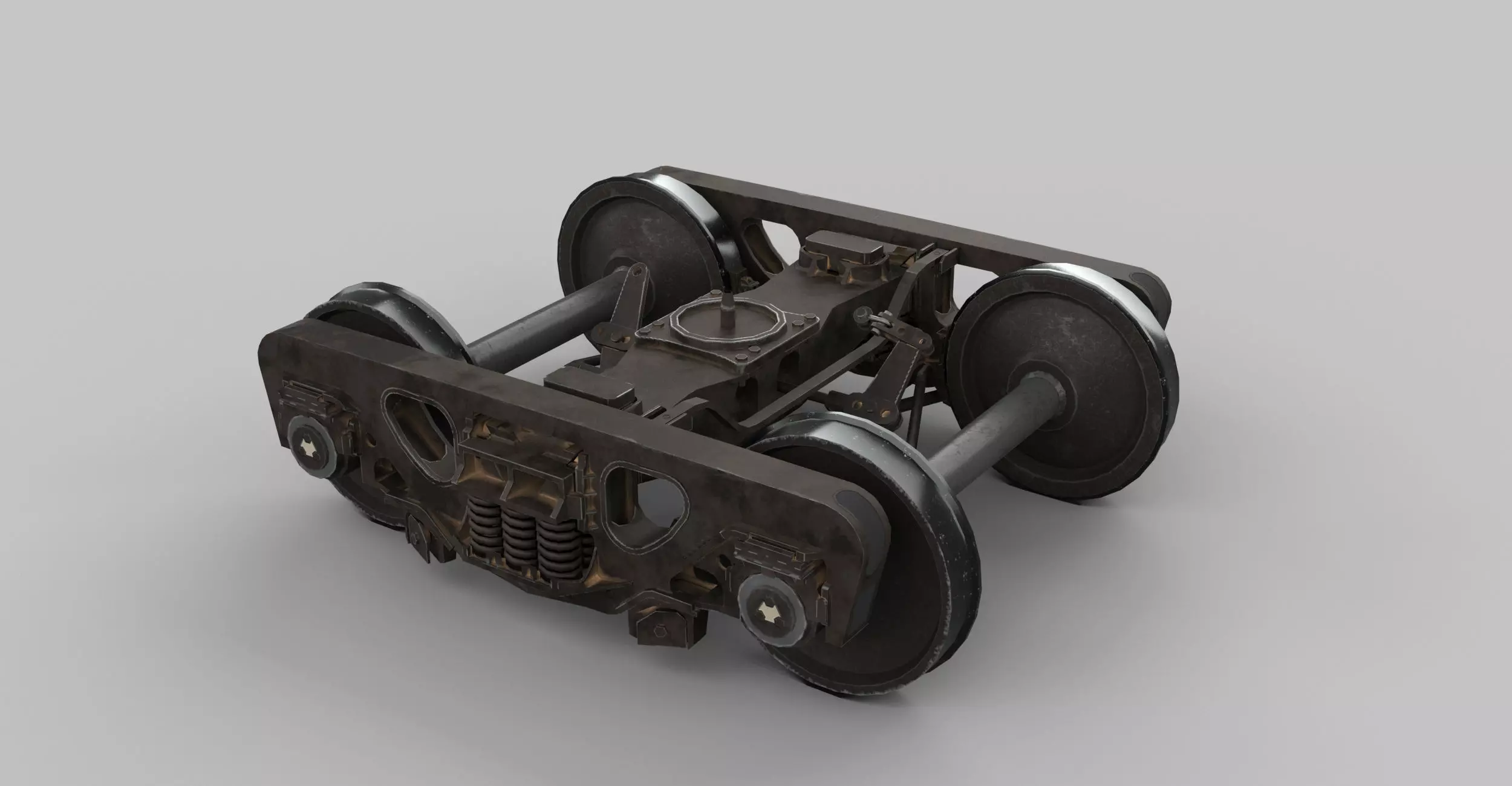 General freight train bogie model,the gauge is 1435mm and the Axle load is 25T. The shape and details are very realistic,it can be used for industrial model demonstration,enjoy!