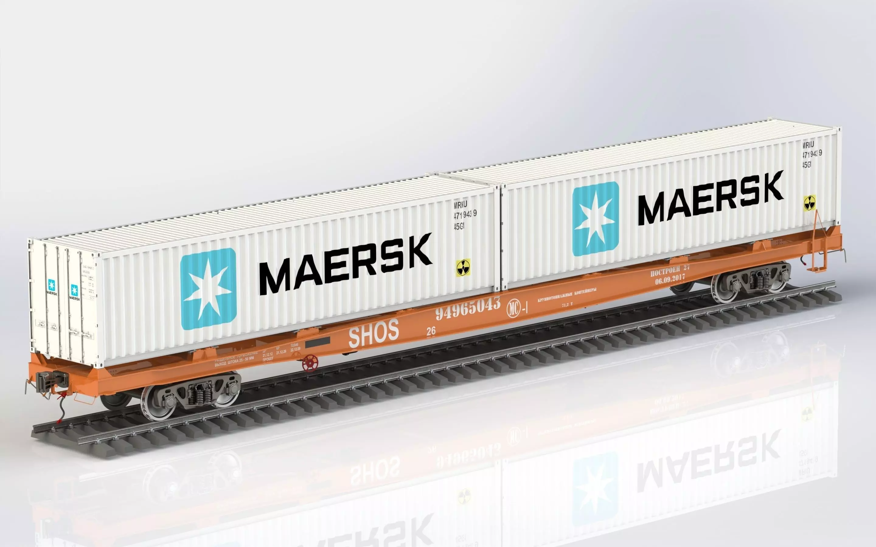 TECHNICAL CHARACTERISTICSLoading capacity, no more, than a t - 71,2Mass of a container, no more, than a t - 22,8Car length on axes of coupling of automatic couplings, mm - 25 620Base of the car, mm - 18 500Dimension in accordance with GOST 9238 - 03-BMHeight to a coupling axis from the level of heads a rail, mm - 1060±20Settlement static load from wheel couple of rails, kN (hardware) - 230,5 (23,5)Between-repairs run, years (one thousand km) - 4 (500)Constructional speed, km/h - 120Service life, years - 32