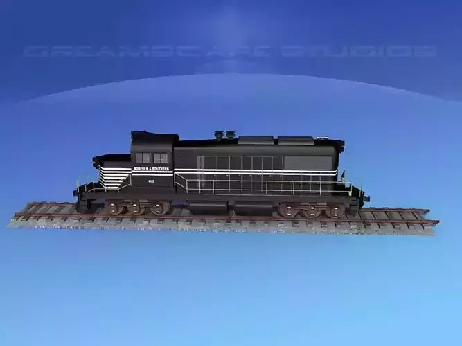 Diesel Locomotive V06 This model is built near to scale, includes a lot of exterior detail giving in a realist look. It is fully textured and all materials and textures are provided as shown. It includes animateable drive wheels and lighting. It is resting on a section of straight track also fully textured. The model comes complete in several formats for your immediate downloading.