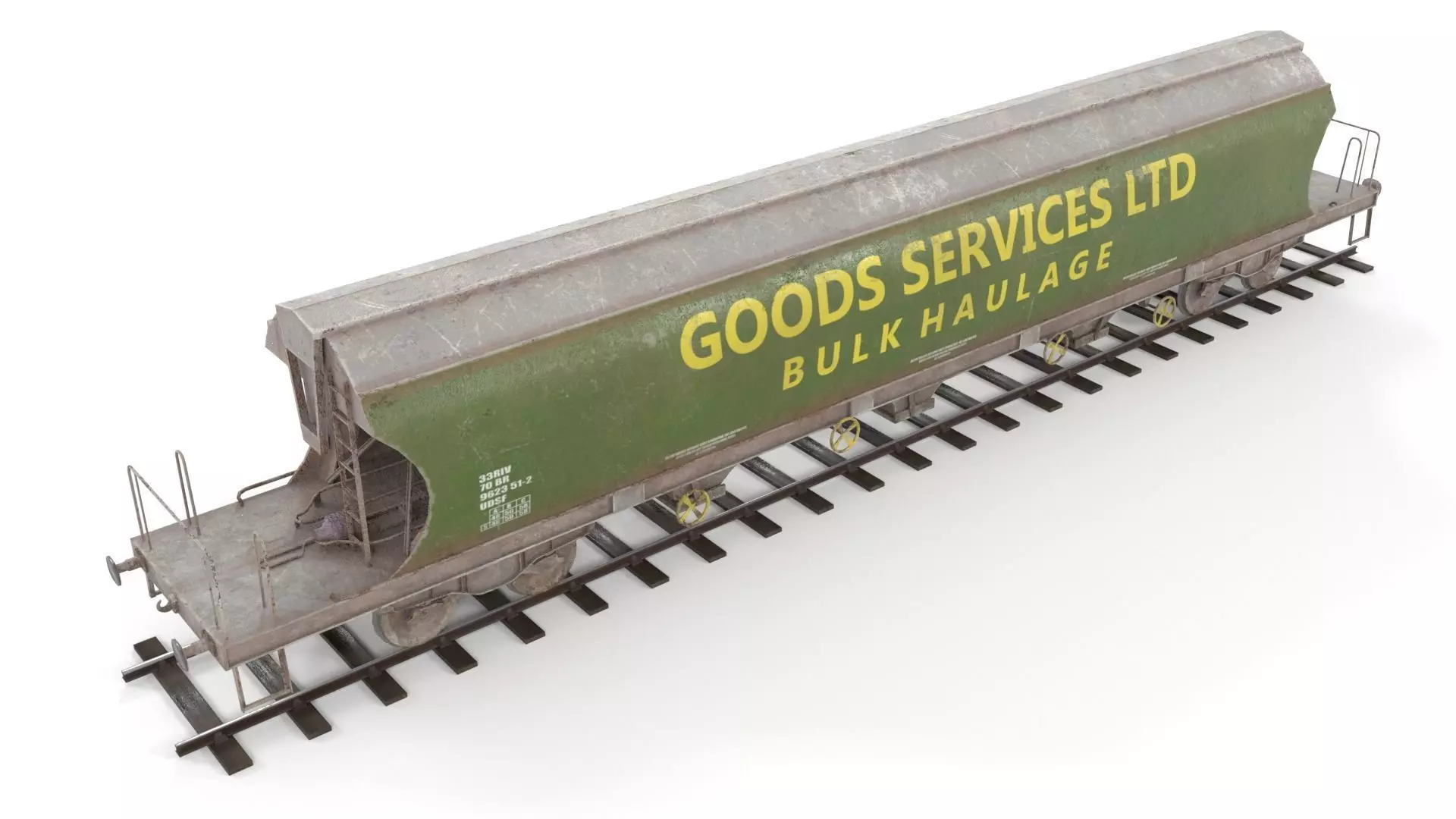 Hopper is 7750 polys and 8678 verts, the track is 1764 polys and 2452 verts.