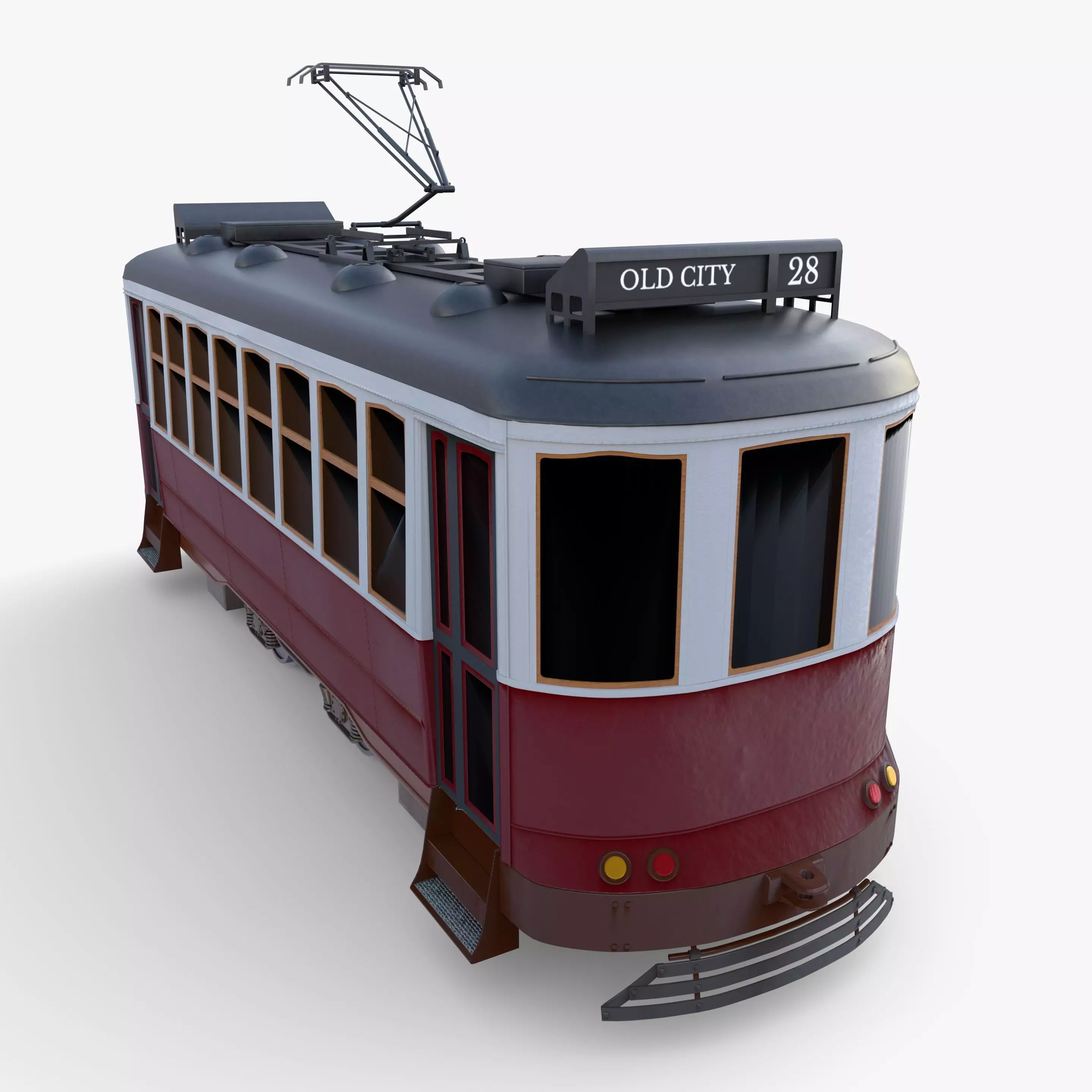 Highly detailed Historic tram 3d model rendered with Cycles in Blender, exactly as seen on attached images.