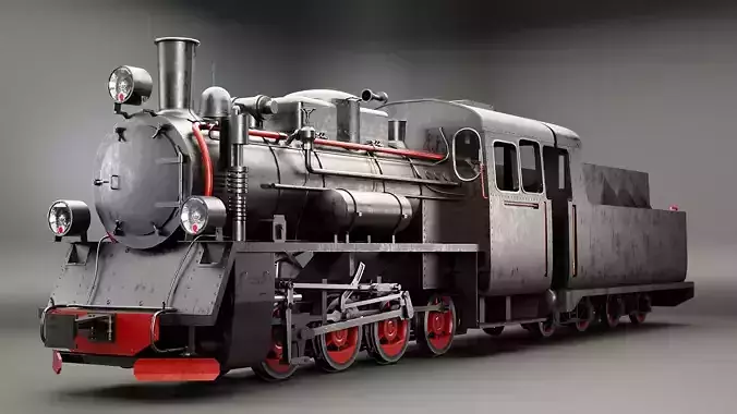 Narrow-gauge Black Steam Locomotive 3D model