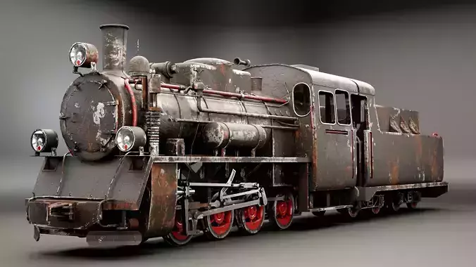 Narrow-gauge Rusted Old Black Steam Locomotive 3D model
