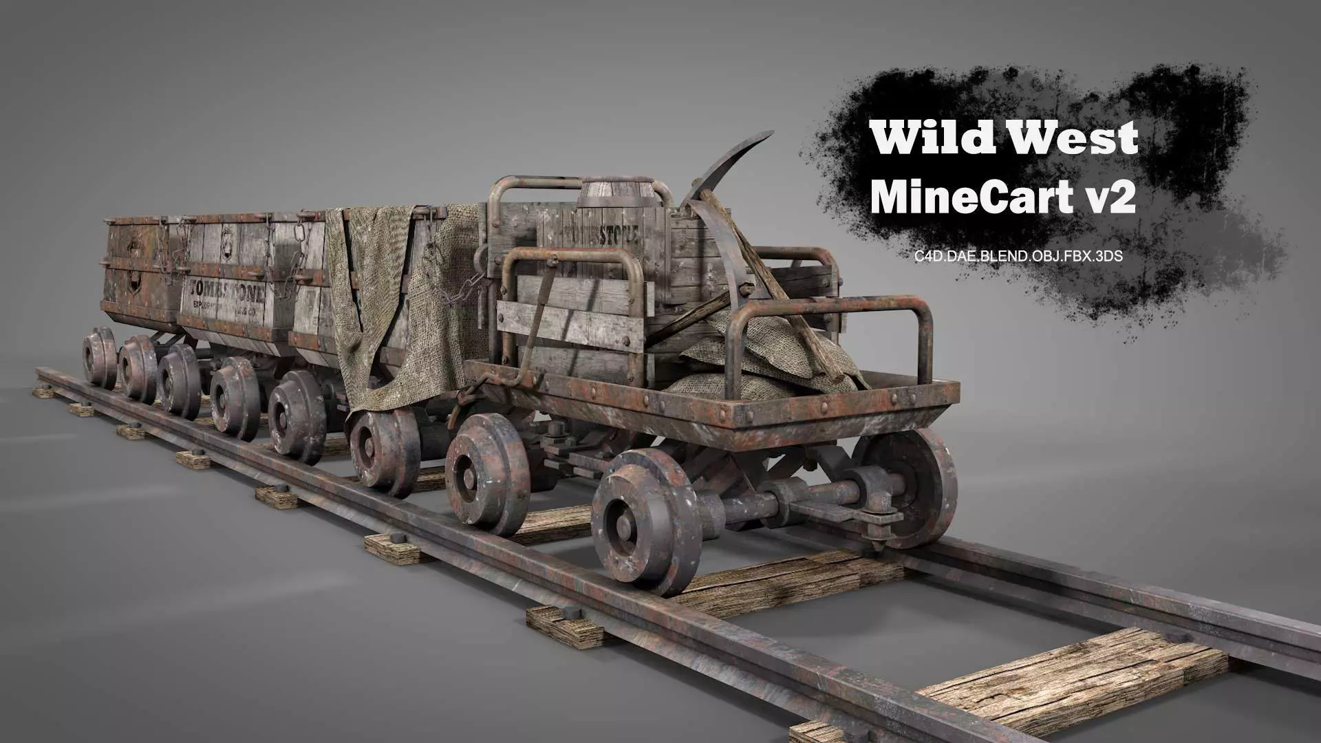mncart2.FBX (v7.4) has connected objects and baked textures same as C4D file. This format needs UVTEX folder for materials.