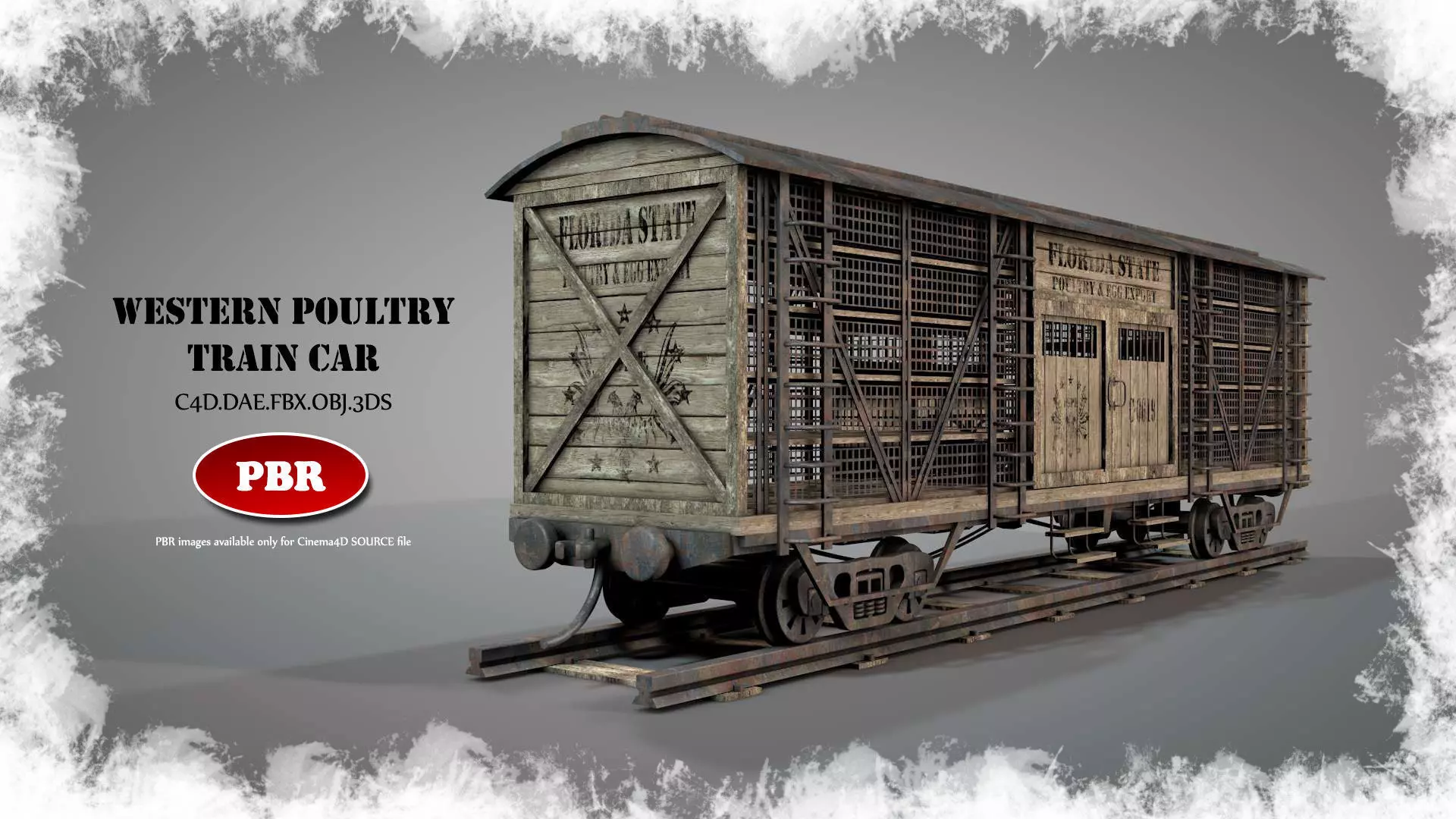 This is a nice looking model of a wild west or newer ages poultry train car. Good textures, nice UVs and many detailed parts are included.