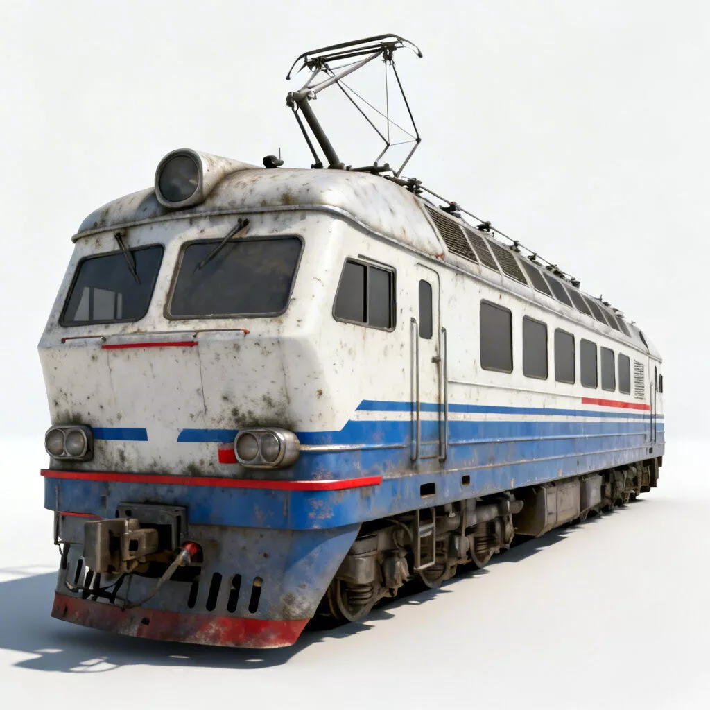Asset BreakdownThe Overall ConceptThis asset is a high-fidelity, 3D-modeled realistic 1990s electric passenger train 3D model designed as a primary transport unit for modern urban environments, gritty cinematic transit sequences, or late-century historical visualizations. Focusing on a weathered-commuter aesthetic, this model features a heavy electric locomotive silhouette integrated with a classic white and blue tricolor livery and a roof-mounted pantograph, making it an ideal choice for high-end character renders, cross-country-escape quest objectives, or as a flagship mobile unit in realistic 3D games.