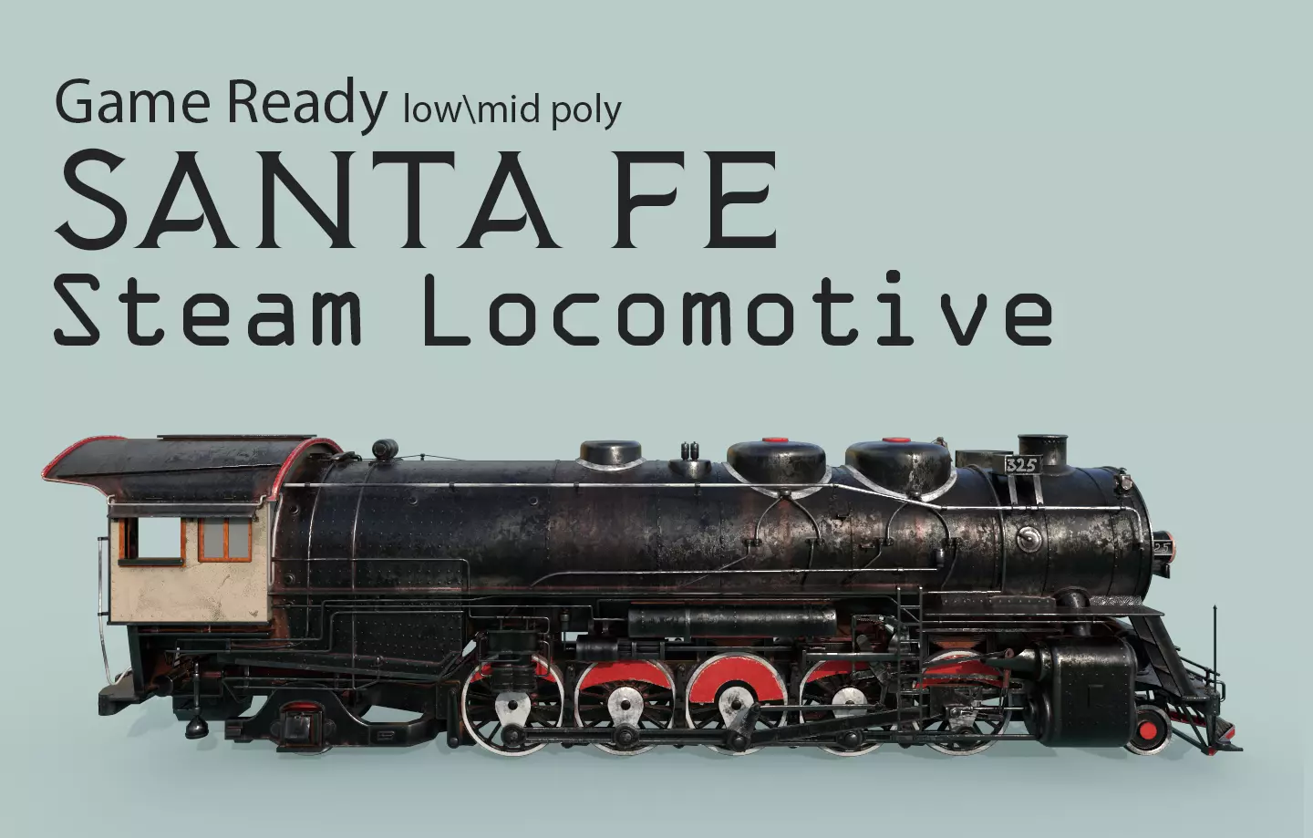 Santa Fe Steam train Locomotive Low-poly 3D model