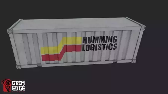 A weathered industrial shipping cargo container featuring the “Humming Logistics” branding, ideal for populating shipping yards, warehouses, docks, and sci-fi or modern environments.