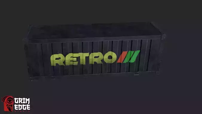 A weathered industrial shipping cargo container featuring the “RETRO” branding, ideal for populating shipping yards, warehouses, docks, and sci-fi or modern environments.