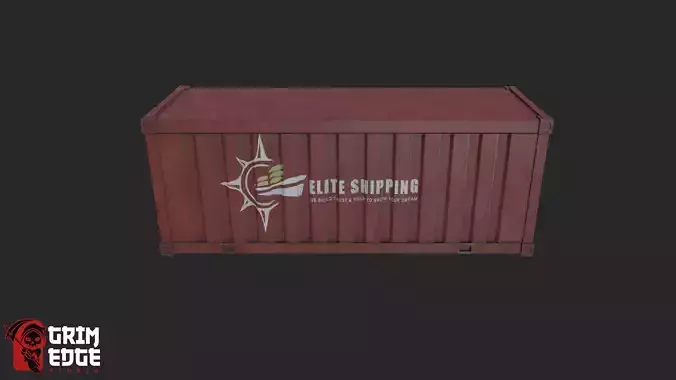 A weathered industrial shipping cargo container featuring the “Elite Shipping” branding, ideal for populating shipping yards, warehouses, docks, and sci-fi or modern environments.