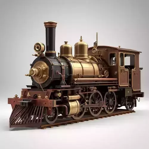 Intricate Steam Propulsion: Showcases a highly detailed front boiler system with a vertical chimney, multiple brass valves, and a visible network of copper piping.