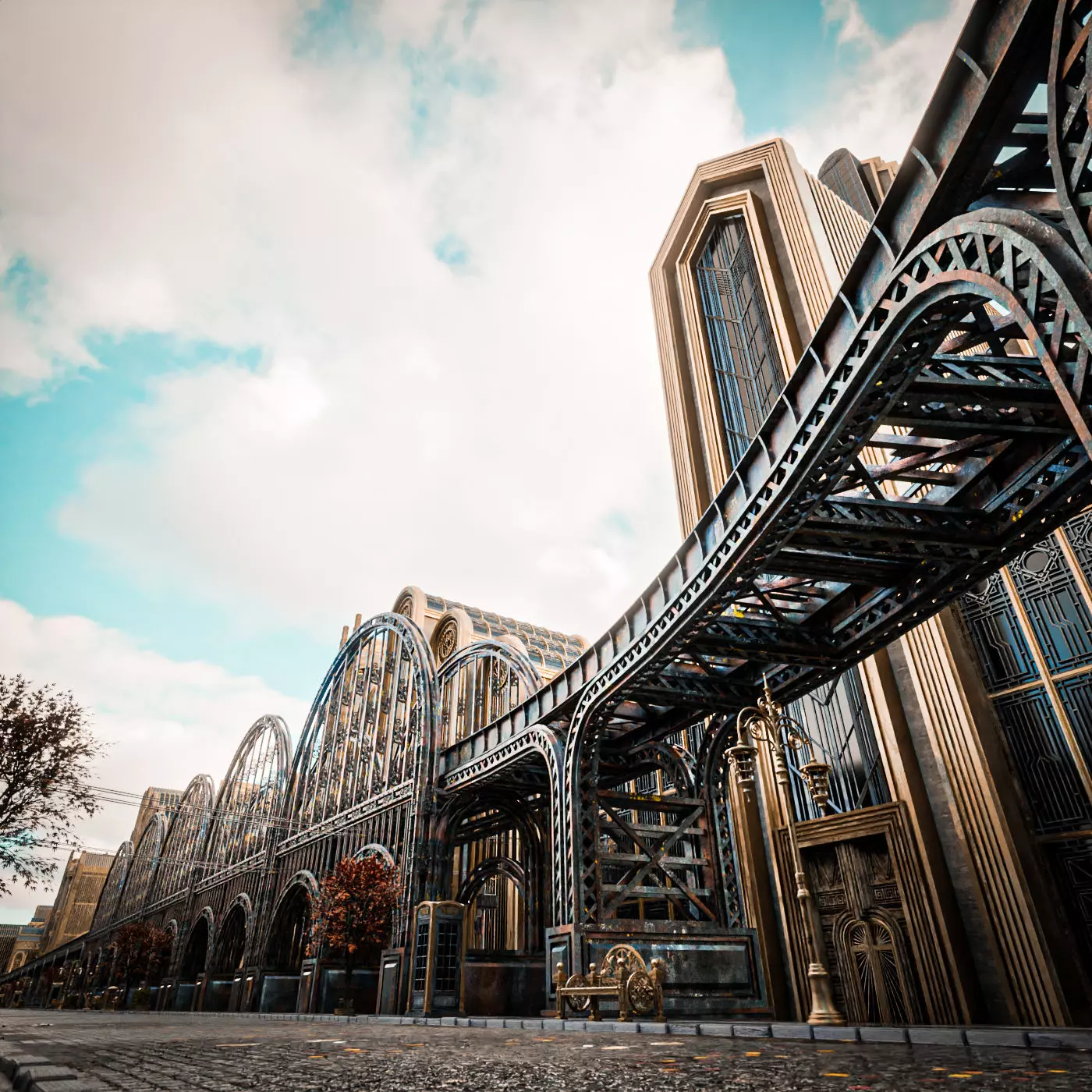 modular set of ART DECO STEAMPUNK TRAIN BRIDGE MODULAR . everything is handmade by me with attention to detail, really good model to use for film, VFX, or game. 2K texture included. PBR ready. normal maps, specular, roughness etc. no triangle or ngon. only quad. uv mapped. medium poly 3d model. easy if you want to change the texture.(all pbr texture included in the pack). this is part of my STEAMPUNK ART DECO PACK. be sure to check my page. save more by buying the pack. thank you. --------JUST TRAIN BRIDGE NO BUILDINGS.