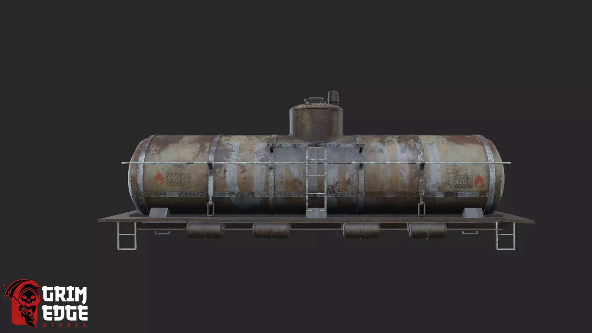 Feature DescriptionAuthentic Tanker Design: Cylindrical oil tank mounted on a rail platform with ladders, railings, access hatch, and support brackets for realistic industrial accuracy.High-Quality Weathering: Extensive rust, peeling paint, oil stains, and grime build-up convey long-term use and harsh environmental exposure.PBR-Ready Textures: Realistic metal roughness, corrosion detail, and surface variation optimized for modern rendering pipelines.Game-Optimized Geometry: Clean topology and efficient polygon count suitable for real-time applications, simulations, and interactive scenes.Detailed Safety Elements: Includes caution decals, fire hazard symbols, access ladders, and maintenance components for enhanced storytelling.Versatile Environment Use: Ideal for train yards, refineries, industrial complexes, abandoned rail lines, survival maps, and cinematic scenes.