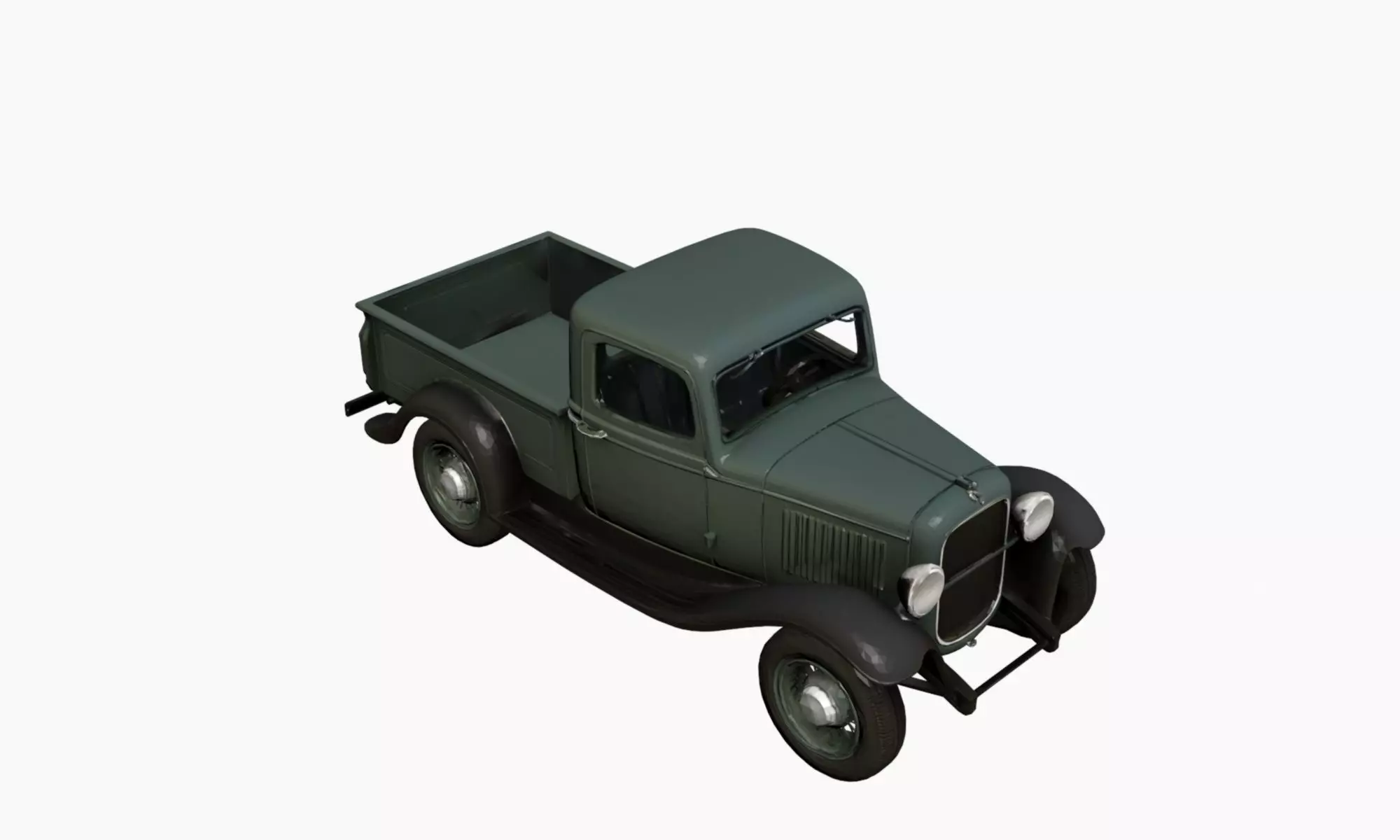 This 1932 vintage pickup truck 3D model captures the early development of classic utility vehicles from the early 1930s automotive era.The model features a simple steel body, rounded fenders, exposed wheels, and a compact cab, reflecting the functional and mechanical design language of 1932 pickup trucks.