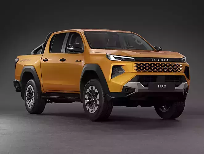 Photorealistic, high-quality and accurate 3D model of 2026 Toyota Hilux with high detailed interior.