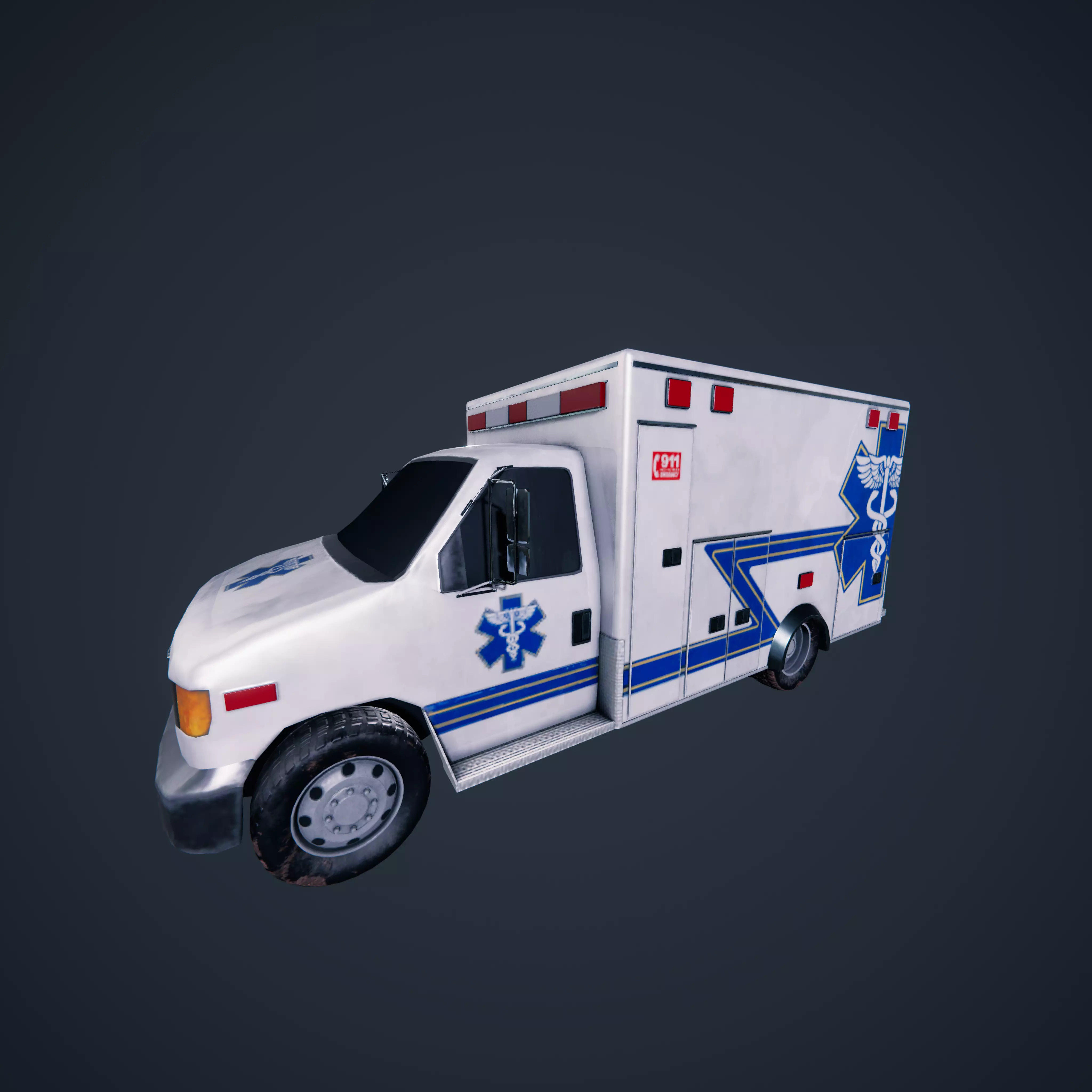 Ambulance Box Truck Rigged INTERIOR EXTERIOR Low-poly 3D model