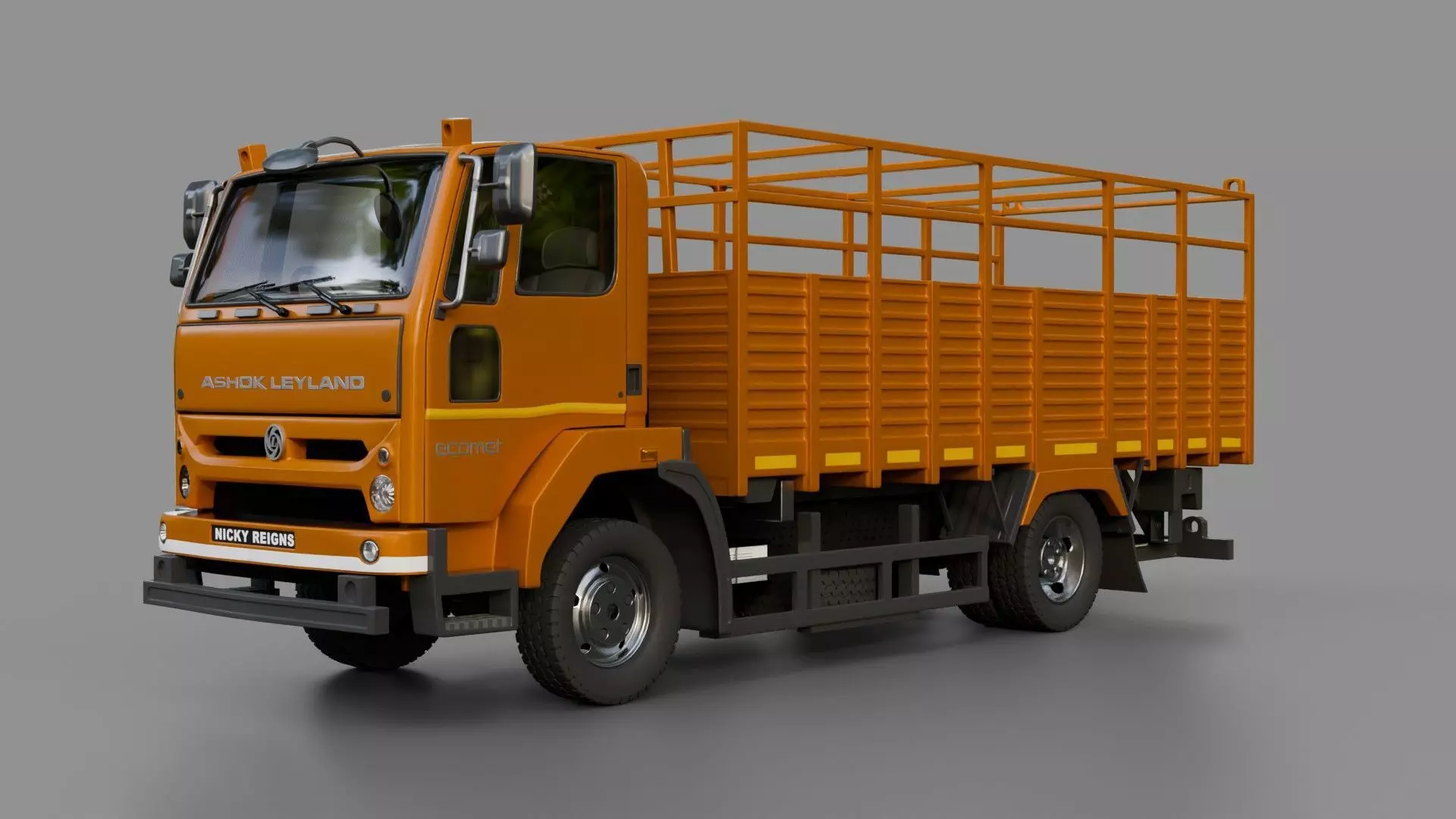 3D model of the Ashok Leyland Ecomet 1215 HE. Created in Blender and rigged.The mesh of the model in the Blender file format is mainly quads.