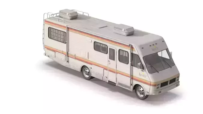 Breaking Bad RV Fleetwood Bounder 1986 Vintage Rigged for Maya is a three-dimensional model of Breaking Bad vintage RV Fleetwood Bounder 1986 used as a mobile laboratory for the production of prohibited substances.