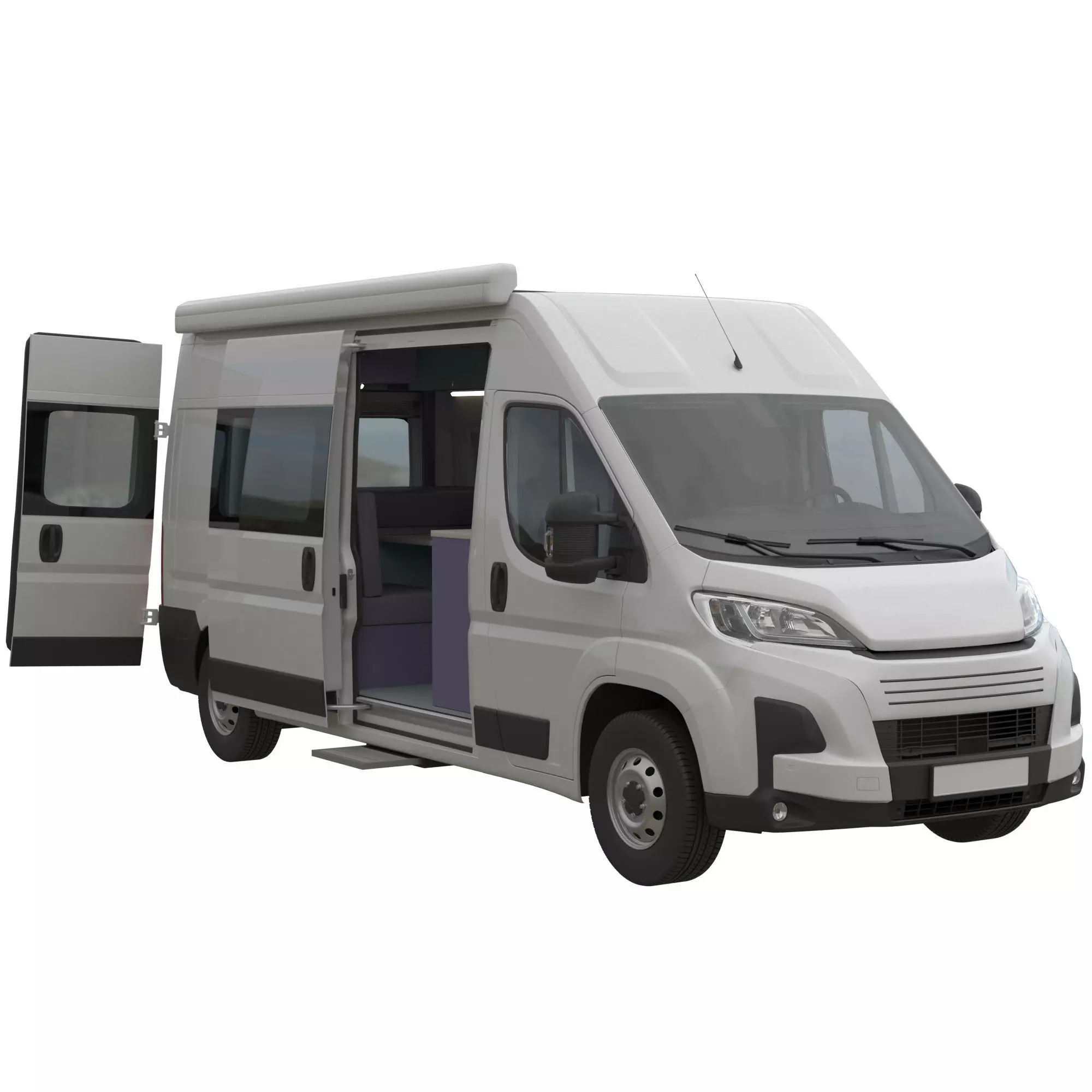 This preliminary design for a Global L3H2 van conversion will be useful for both amateur and professional motorhome builders using commercial vans.For ease of use, each object has a name similar to the material used. All objects for converting the van's cargo compartment have the additional designation interior in their names. This allows for quick separation of these objects for editing. Each object consists of sub-objects, which can be separated into separate objects if your 3D editor supports this feature.All materials are simple and do not require textures. You can change materials and apply texturing if necessary. This is done for ease of export and editing. This project is preliminary, so all dimensions require clarification and measurements on the actual van, so please keep this in mind.Detailed model of the Global commercial van. The model has no logos or nameplates. In terms of dimensions and features, this model matches the following vans (produced since 2014): FIAT Ducato, Peugeot Boxer, Citroen Jamper, RAM ProMaster, Opel Movano, Vauxhall Movano, and Toyota Proace Max.All these models are technically identical. Externally, they differ in the design of the decorative radiator grille and front bumper elements. There are also minor differences in the design of some interior elements of the driver's cabin. There are several standard van sizes, varying in length and height: L1H1, L1H2, L2H1, L2H2, L3H2, L4H2, L3H3, and L4H3. The 3D model matches the dimensions of the actual vans but is not an accurate CAD engineering model. This should be taken into account if you work in industrial design. This model is suitable for sketching in 3D graphic editors, visualizing scenes in architectural design, and any other tasks where the absence of logos is desirable. If you're looking for a similar branded model, you can find it among other models in my profile. The van's cargo compartment has a similar set of body panel components.Dimensions van: 5998 mm (length) x 2524 mm (height) x 2050 mm.Polys: 434613 Verts: 468733Model features: Detailed exterior. Detailed interior. Detailed cargo area. Each object has a material name, you can easily change or apply materials. It is easy to separate sub-objects from the object into separate elements. All objects are georeferenced to a point with zero coordinates. In the model are applied simple Materials that do not require textures. The preview is obtained using the Corona renderer and with these materials. Use files with extension (.FBX) to import this model into other graphic editors, if they support importing (.FBX) files.Formats:1) max (2021 + Corona 12),2) fbx (2013 Corona),3) obj,4) blend 3.6 (materials require customization)Render: Corona.Happy renders! See other models on my profile.