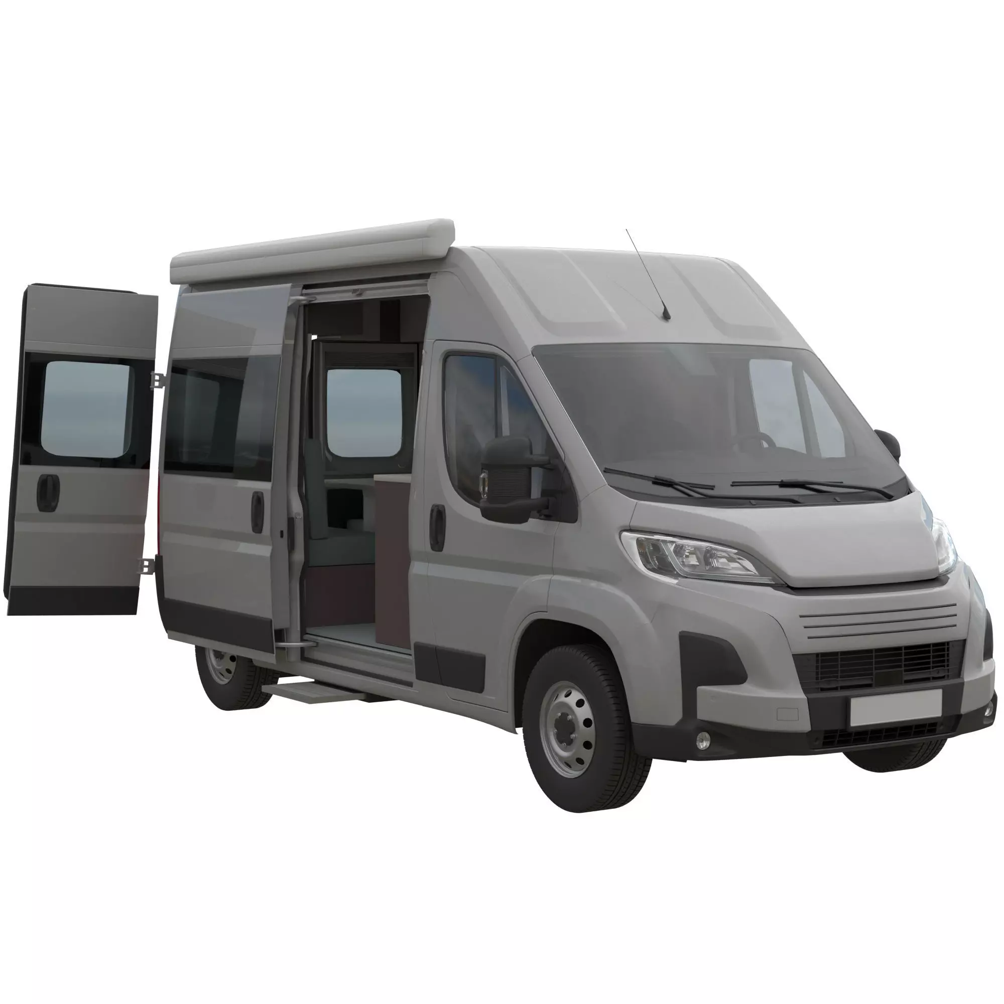 Detailed model of the Global commercial van. The model has no logos or nameplates. In terms of dimensions and features, this model matches the following vans (produced since 2014): FIAT Ducato, Peugeot Boxer, Citroen Jamper, RAM ProMaster, Opel Movano, Vauxhall Movano, and Toyota Proace Max.All these models are technically identical. Externally, they differ in the design of the decorative radiator grille and front bumper elements. There are also minor differences in the design of some interior elements of the driver's cabin. There are several standard van sizes, varying in length and height: L1H1, L1H2, L2H1, L2H2, L3H2, L4H2, L3H3, and L4H3. The 3D model matches the dimensions of the actual vans but is not an accurate CAD engineering model. This should be taken into account if you work in industrial design. This model is suitable for sketching in 3D graphic editors, visualizing scenes in architectural design, and any other tasks where the absence of logos is desirable. If you're looking for a similar branded model, you can find it among other models in my profile. The van's cargo compartment has a similar set of body panel components.