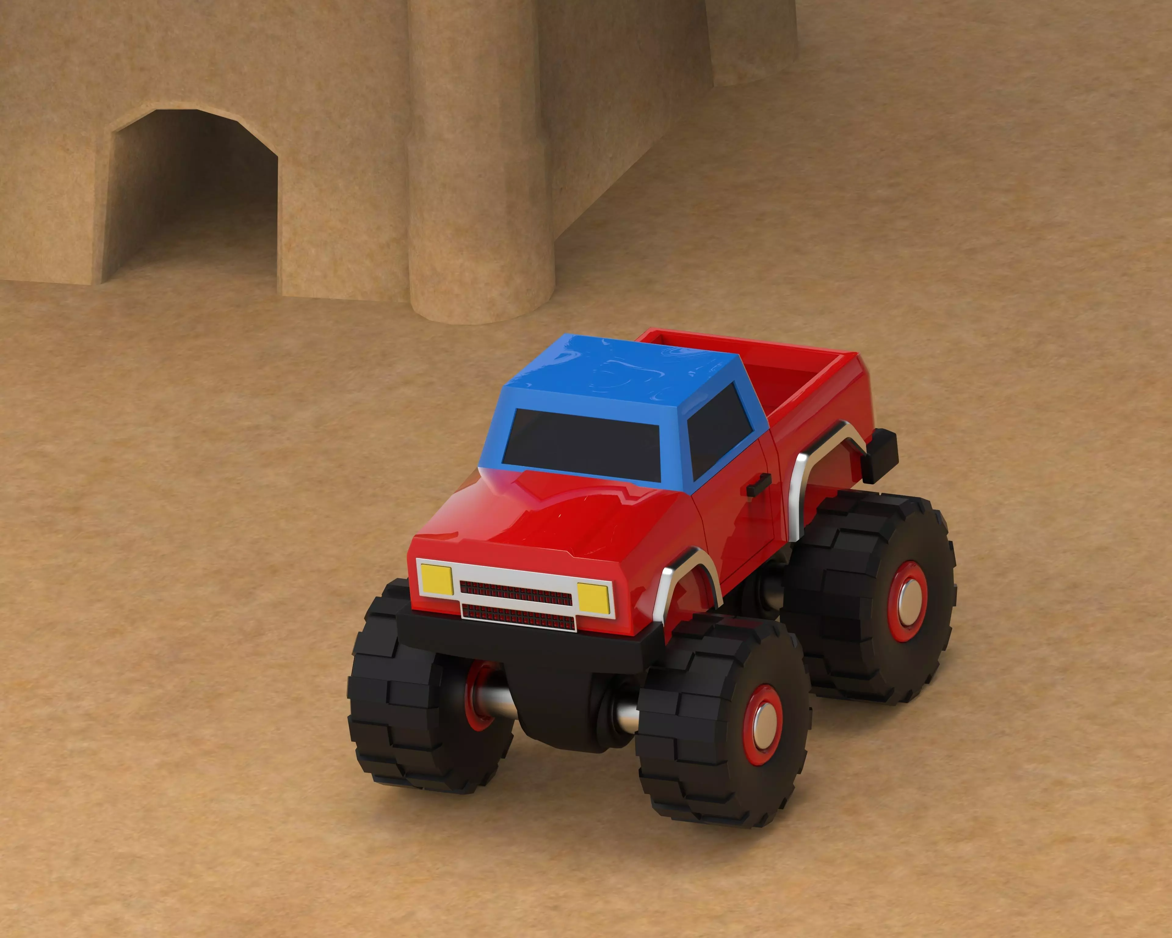 D low poly cartoon monster truck model features a fun and playful design with exaggerated wheels, bold colors, and simplified geometry. Built with optimized polygons, it’s perfect for games, animations, and kids’ projects. The model captures a cheerful, toy-like appearance while maintaining smooth performance in any real-time environment.
