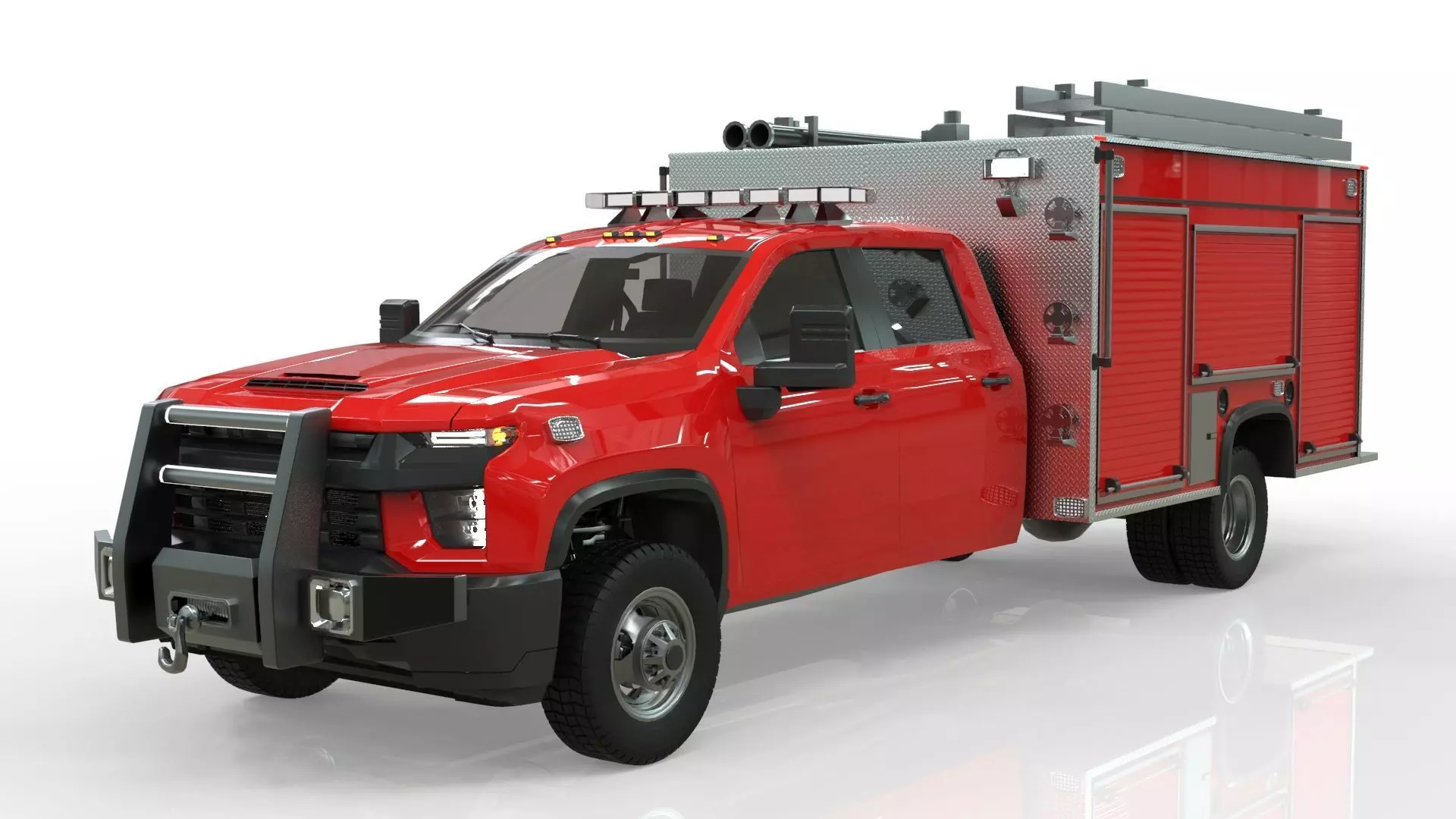 Lowpoly firetruck inspirated in Chevy Silverado 3500 HD Crewcab year 2021; logos or brand names were not used so as not to infringe on copyright infringement and to be able to be used in video games; ready for videogame modd like GTAv, ATS , ETS, roblox ,etc. Blender modeling, all meshes with UV mapping, clean geometry, all meshes in positive orientation, all meshes separated by editables materials. faces: 125444 tris: 241014 vertx: 144328 formats: .blend(native), .3dsmax (2016), .fbx, .obj, .dae, .stl(printable), glb