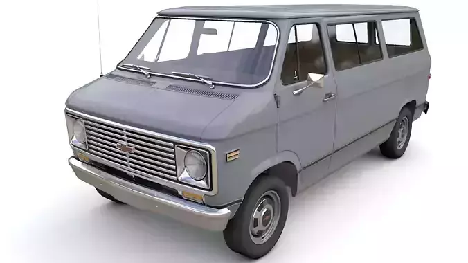 Detailed 3D model Chevy Van Beauville 1971, from inside and outside.