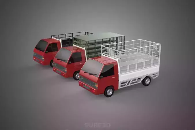 This term describes a specific configuration of a road vehicle, typically a light commercial vehicle such as a pickup truck or similar utility vehicle, that has been adapted for the collection, transport, and delivery of agricultural produce, primarily vegetables and fruits. The defining feature is the installation of a cage or crate-like structure mounted on the vehicle's cargo bed (the 'back' section).