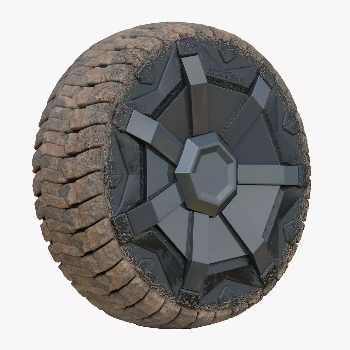 Dirty Tesla Cybertruck Wheel Low-poly 3D model