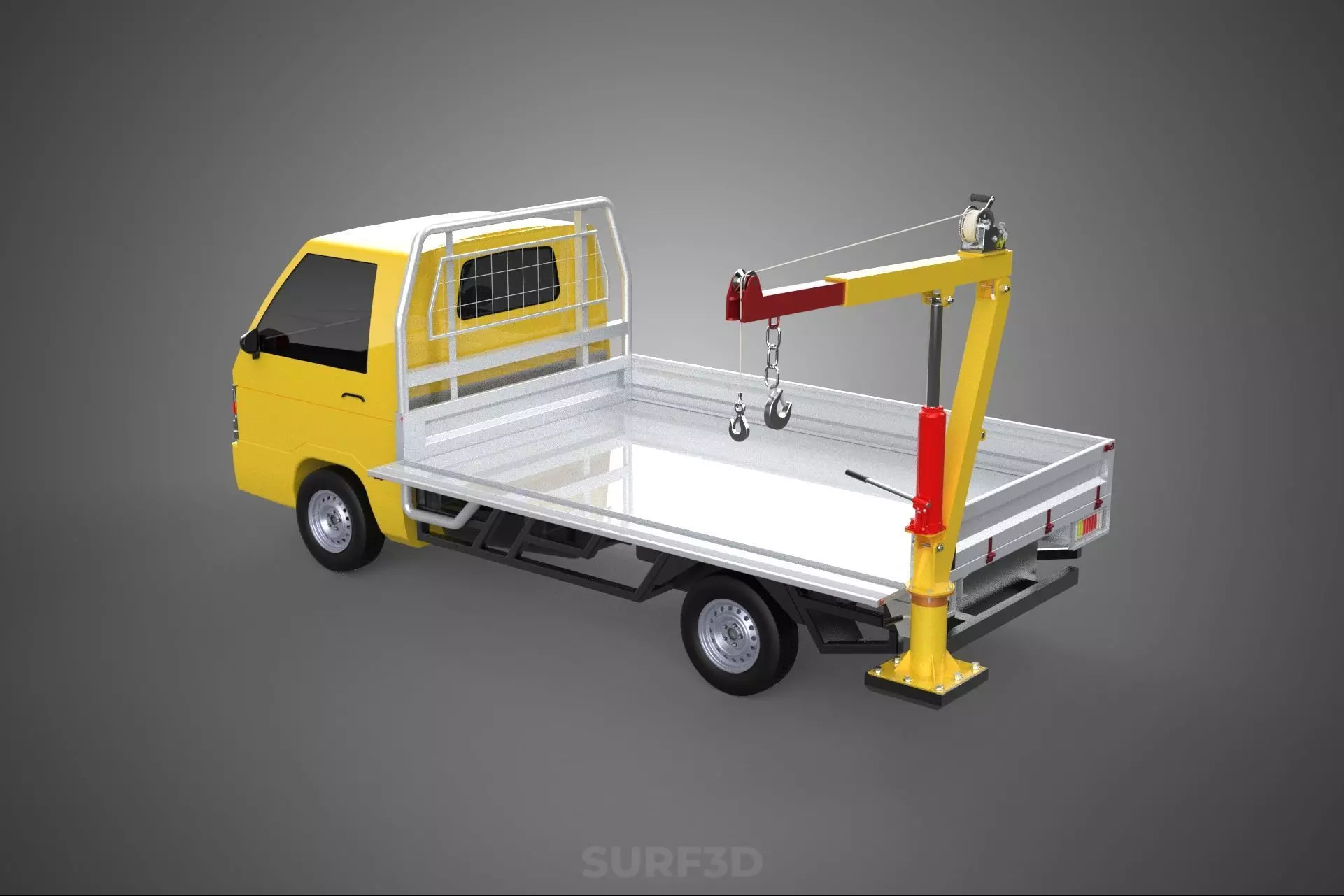 At its core, the system utilizes a TRUCK PICKUP as the mobile base. This typically refers to a light-duty or medium-duty commercial vehicle known for its open cargo bed, robust chassis, and off-road capabilities, providing both mobility and the power source for the integrated lifting apparatus.