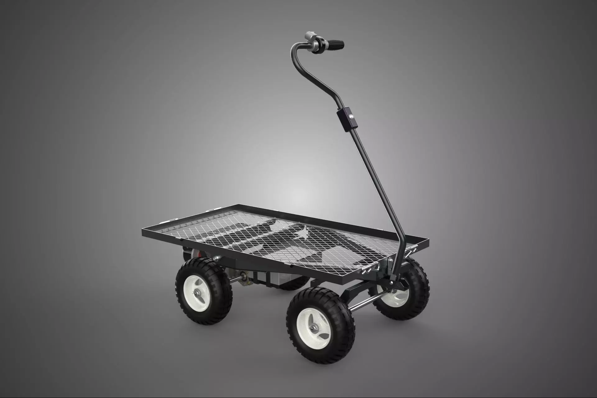 An Electric Metal Grid Mesh Flat Bed Deck Tray Trolley Cart Wagon 4 is a specialized, electrically-powered industrial transport device engineered for the efficient movement of goods across various indoor and outdoor environments. It integrates motorized propulsion with a robust, open-structure metallic load-bearing surface, typically supported by a four-wheel chassis, to facilitate material handling operations. The designation 4 most commonly refers to the quad-wheel configuration, providing inherent stability and maneuverability.