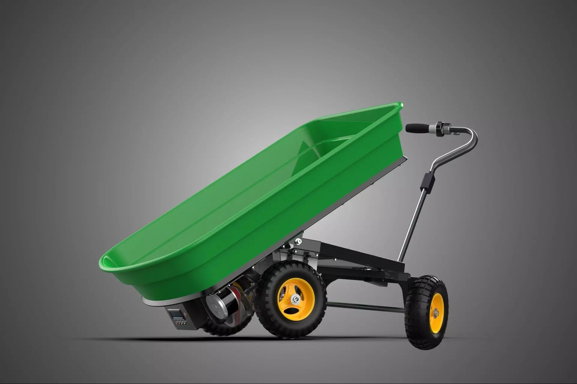These devices typically feature a robust chassis, often constructed from steel or aluminum, providing a stable foundation for the load bed and propulsion system. The core components include a DC electric motor, usually brush or brushless, powered by rechargeable lead-acid or lithium-ion battery packs, which drives one or more wheels via a gearbox or direct drive. Wheel configurations vary, commonly two-wheeled (like a traditional wheelbarrow), four-wheeled (similar to a wagon or trolley), or sometimes track-driven for enhanced traction on uneven or soft ground. The load-carrying component is typically a deep tray, skip, or box, often made of durable plastic or steel, designed for quick and efficient dumping. Dumping mechanisms can be manual (lever-assisted tilt), gas strut assisted, or hydraulic, operated by an additional electric pump for heavier loads. Controls are usually located on handlebars or a control panel, offering variable speed, forward/reverse selection, and often a braking system for safety and control, particularly on inclines.