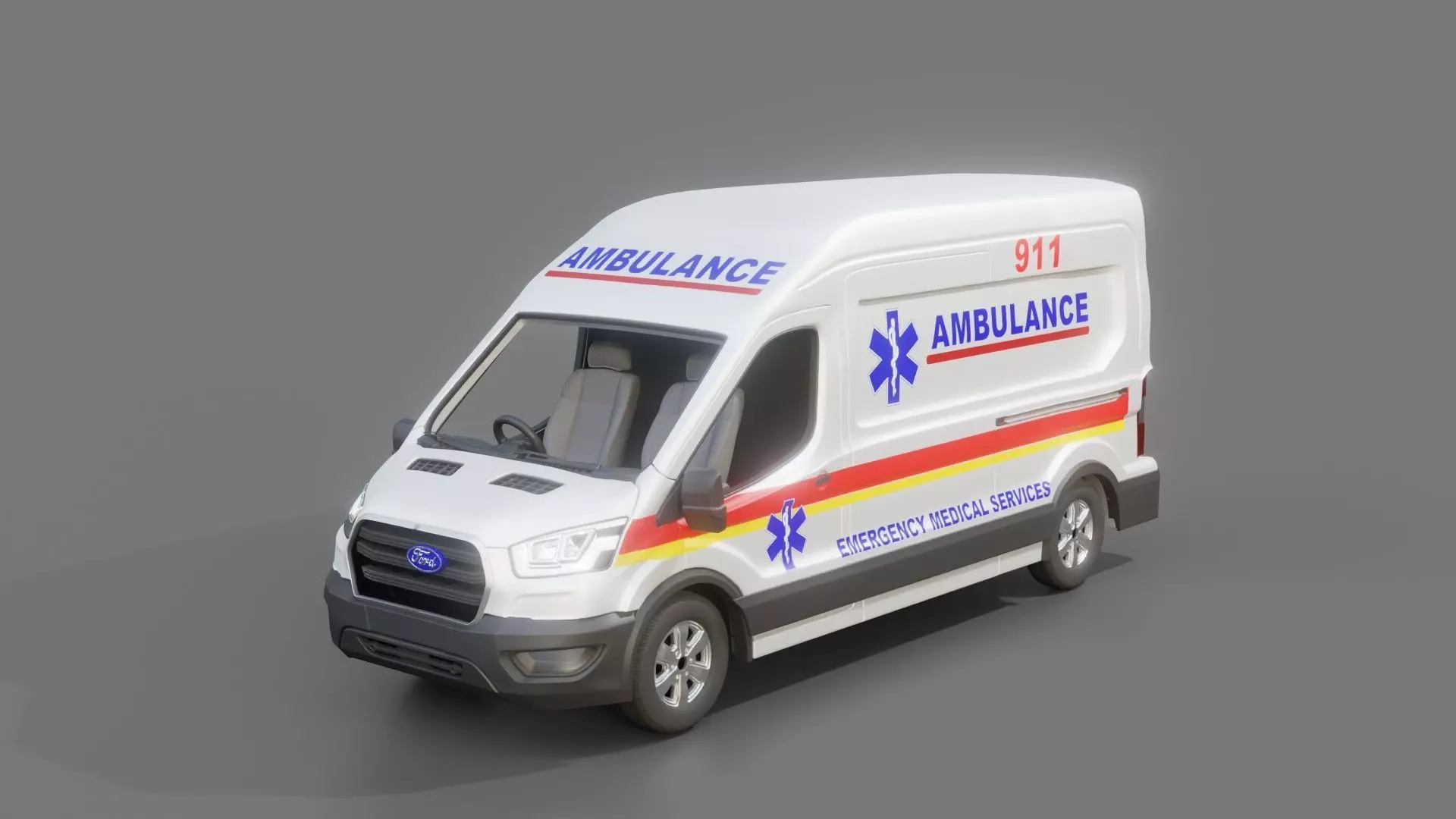 3D model of the Ford Transit AmbulanceCreated in Blender and already rigged.The mesh of the model in the Blender file format is mainly quads.