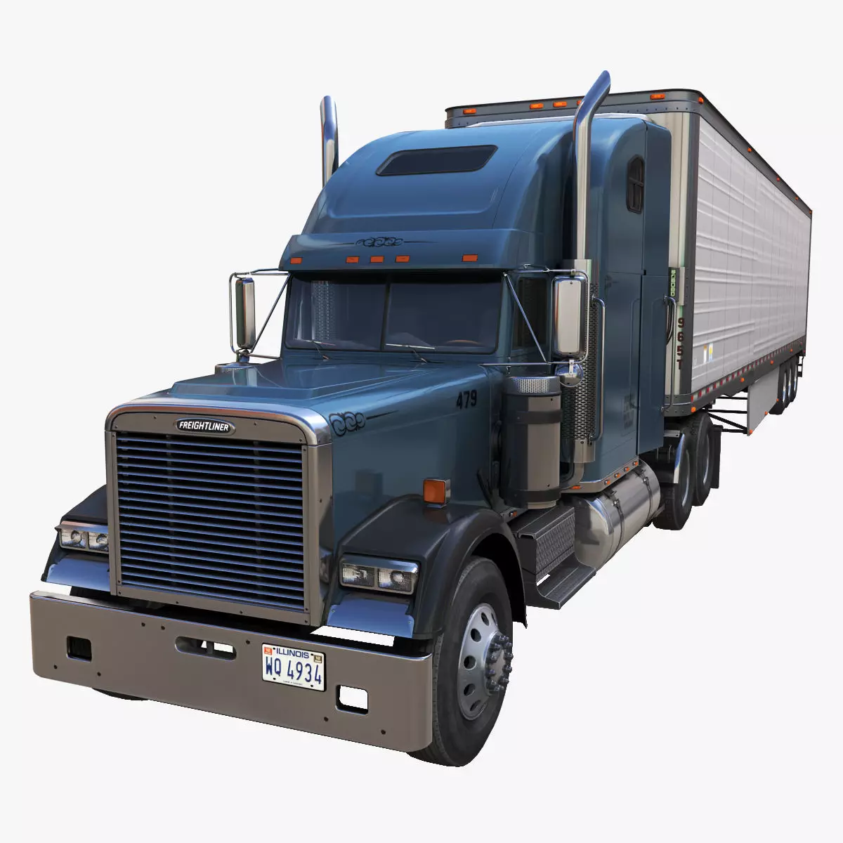 Freightliner Classic refrigerated trailer semitruck game ready model.