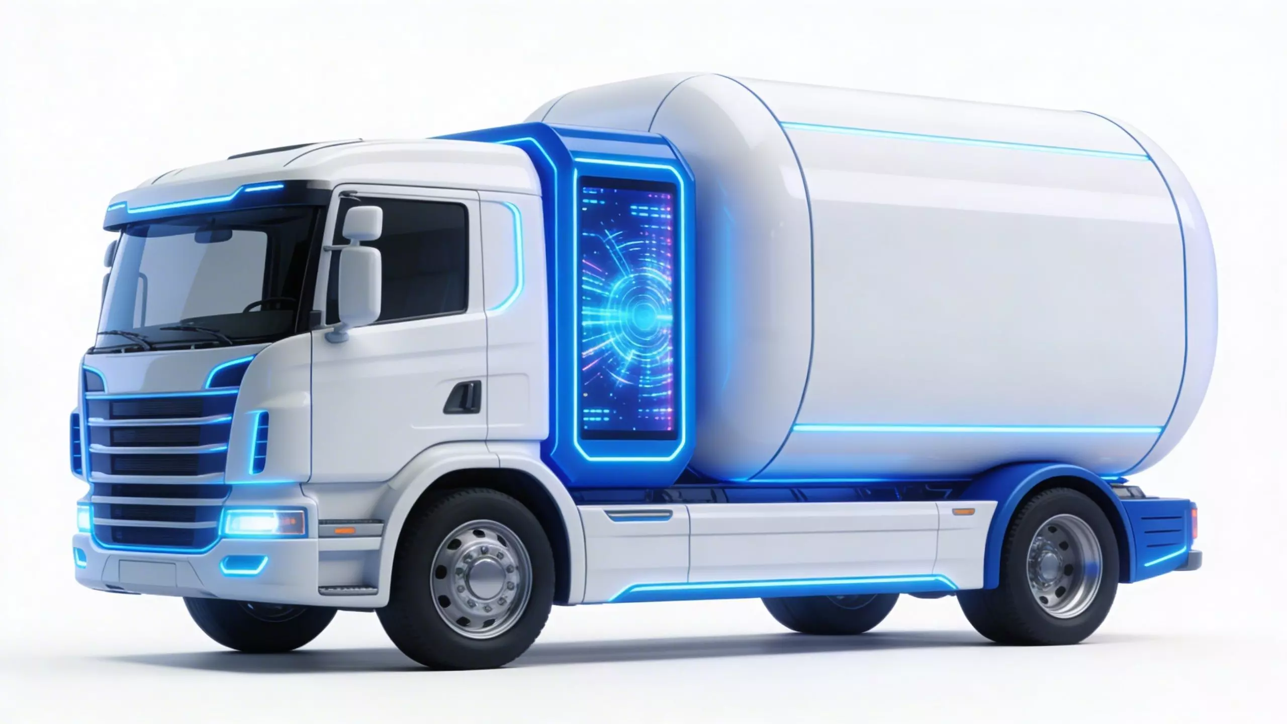 TagsSciFiTruck, TankerTruck, Futuristic, 3DModel, HighTech, SmartLogistics, WhiteGloss, NeonGlow, BlueAccents, GameAsset, Realistic, PBR, IndustrialTransport, ConceptVehicle, Aerodynamic, Emissive, DigitalDisplay, HeavyDuty, SciFiCity, EnvironmentProp