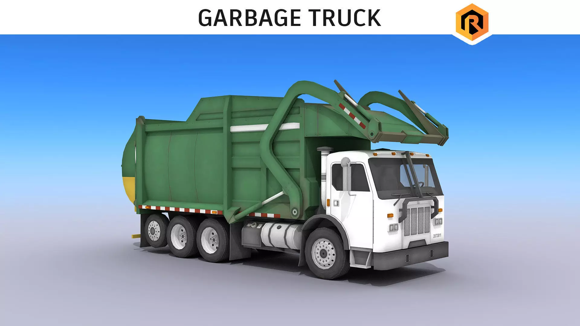High-quality low-poly 3D model of Garbage Truck. The interior part is also modeled.